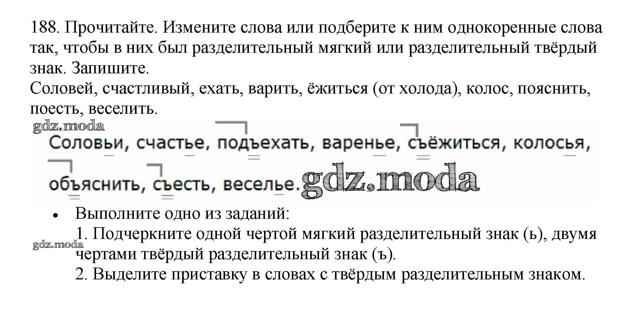 ОТВЕТ на задание № 188 Рабочая тетрадь по Русскому языку 3 класс Канакина Школа России