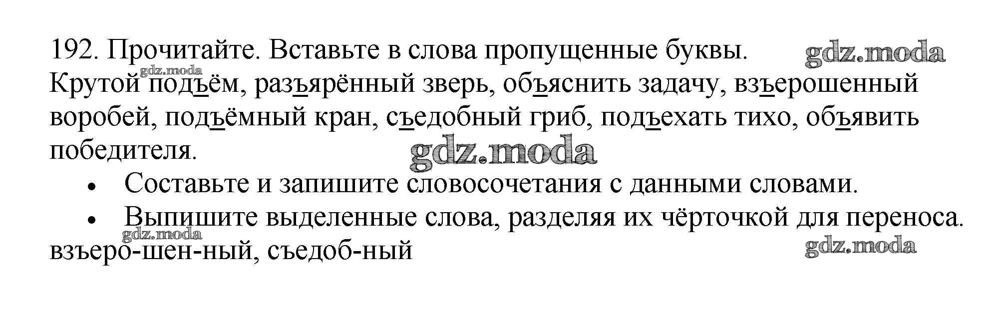ОТВЕТ на задание № 192 Рабочая тетрадь по Русскому языку 3 класс Канакина Школа России