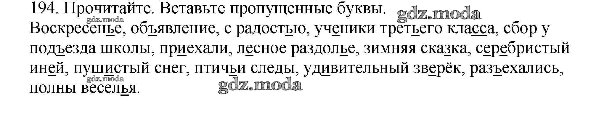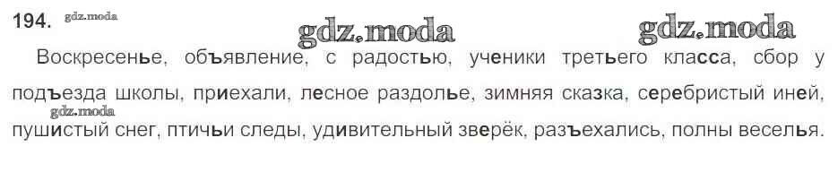 ОТВЕТ на задание № 194 Рабочая тетрадь по Русскому языку 3 класс Канакина Школа России