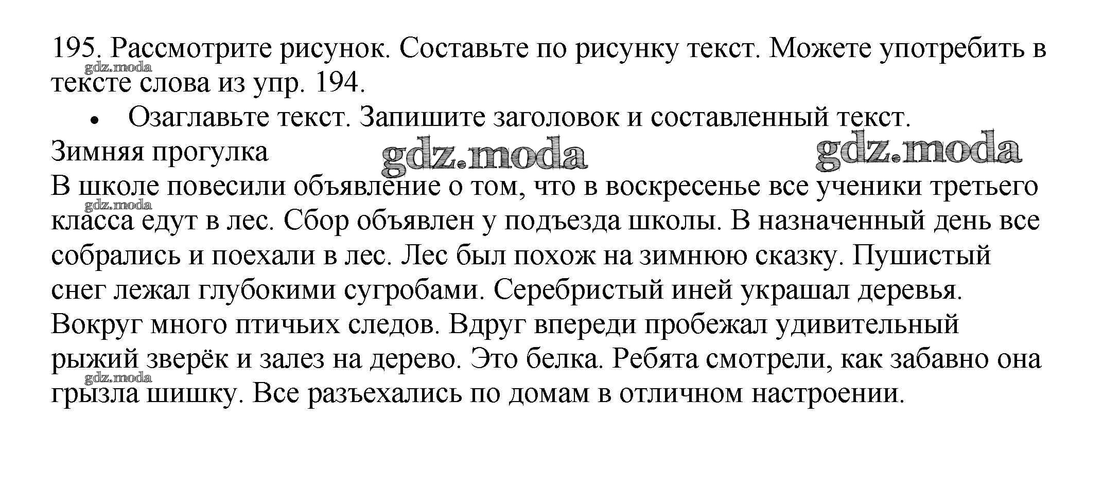 ОТВЕТ на задание № 195 Рабочая тетрадь по Русскому языку 3 класс Канакина Школа России