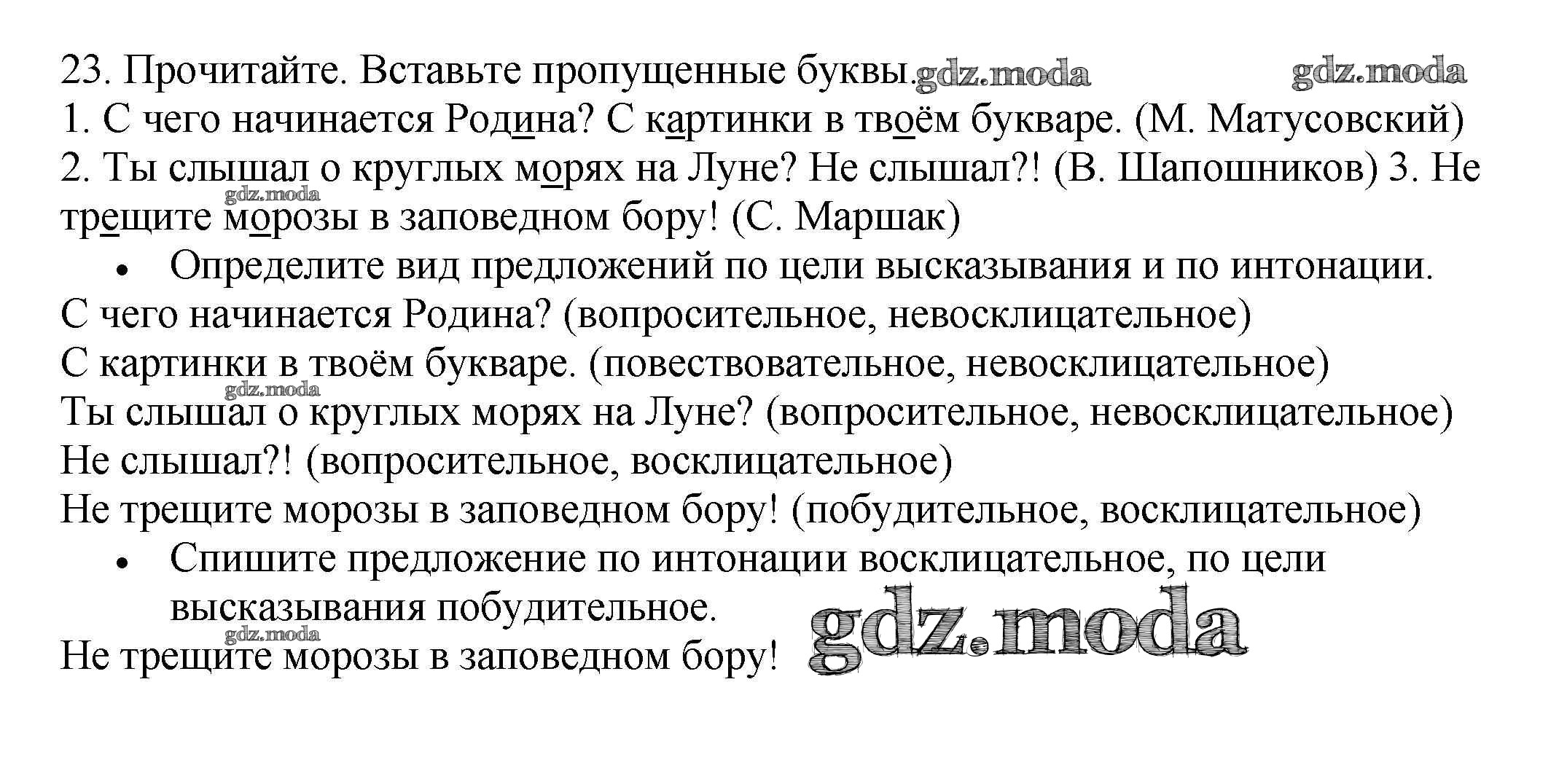 ОТВЕТ на задание № 23 Рабочая тетрадь по Русскому языку 3 класс Канакина Школа России