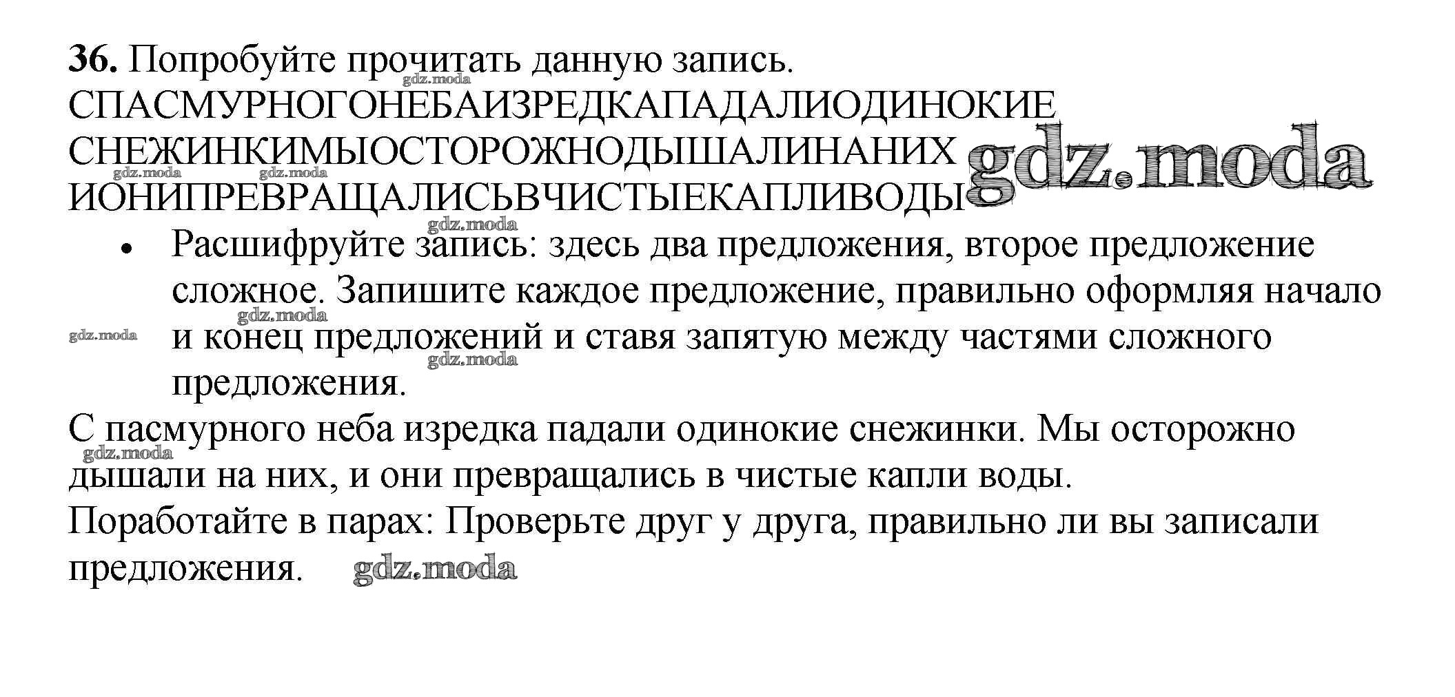 ОТВЕТ на задание № 36 Рабочая тетрадь по Русскому языку 3 класс Канакина Школа России