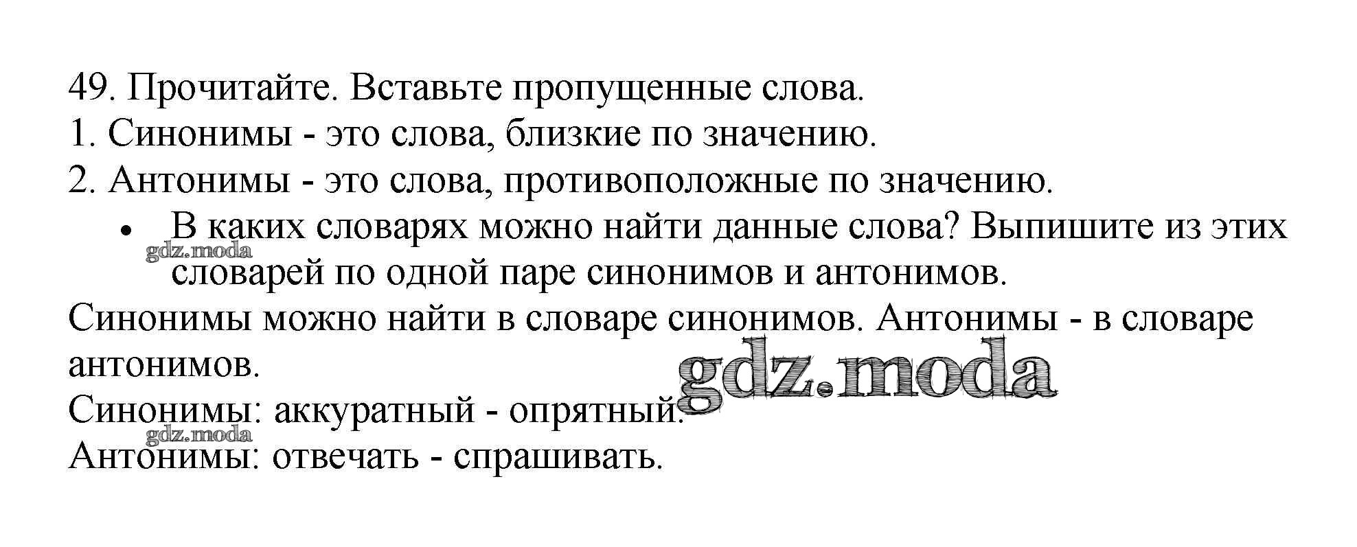ОТВЕТ на задание № 49 Рабочая тетрадь по Русскому языку 3 класс Канакина Школа России