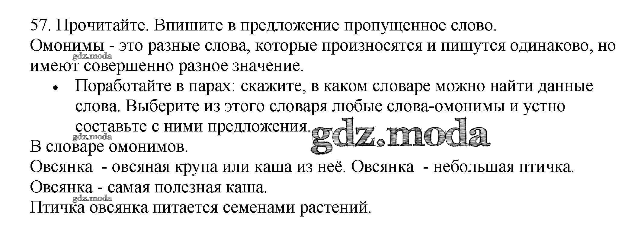 ОТВЕТ на задание № 57 Рабочая тетрадь по Русскому языку 3 класс Канакина Школа России