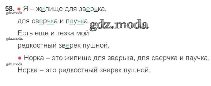 ОТВЕТ на задание № 58 Рабочая тетрадь по Русскому языку 3 класс Канакина Школа России