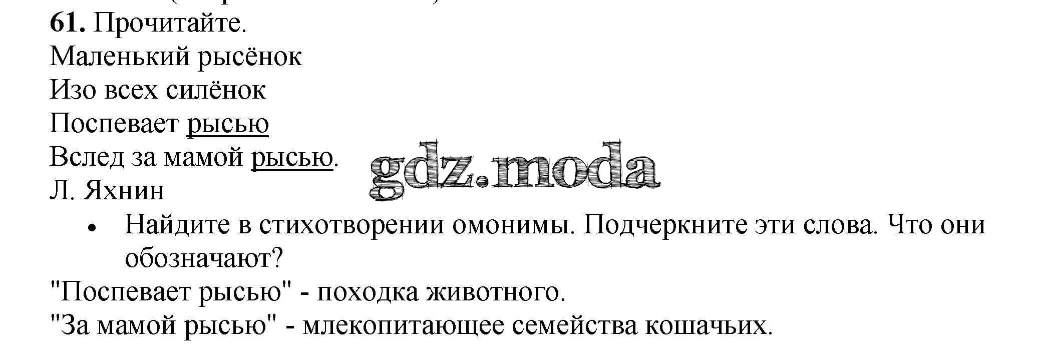 ОТВЕТ на задание № 61 Рабочая тетрадь по Русскому языку 3 класс Канакина Школа России