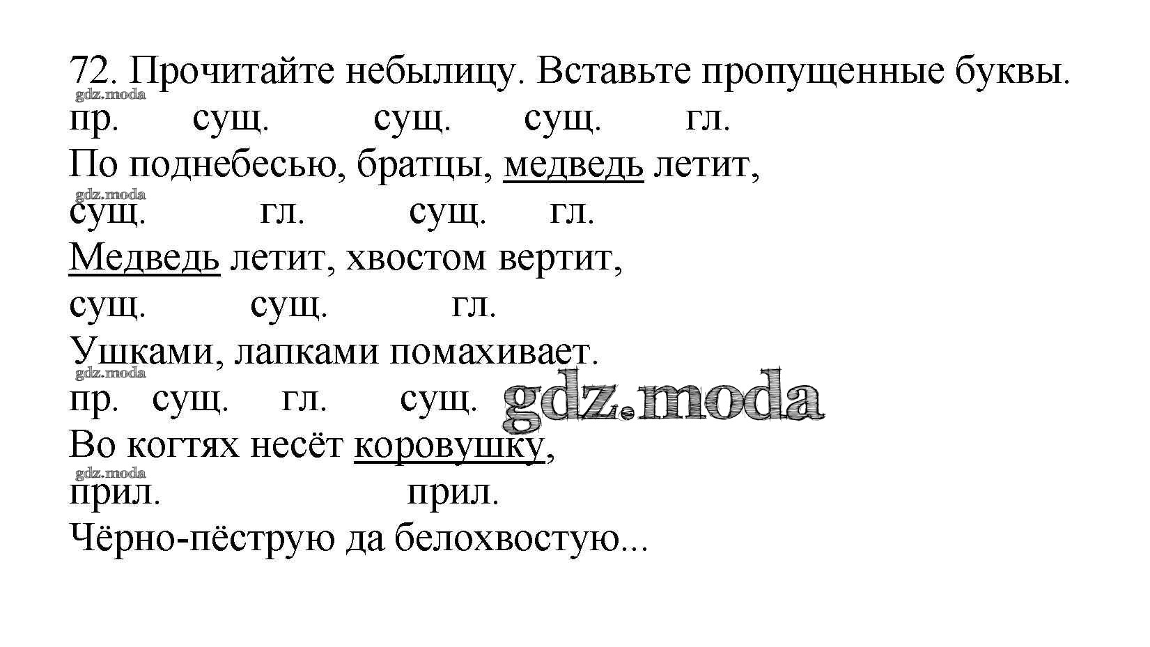 ОТВЕТ на задание № 72 Рабочая тетрадь по Русскому языку 3 класс Канакина Школа России