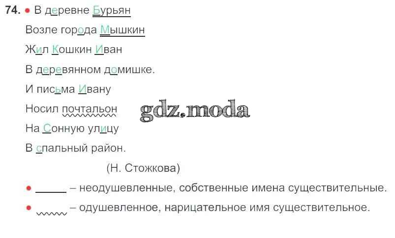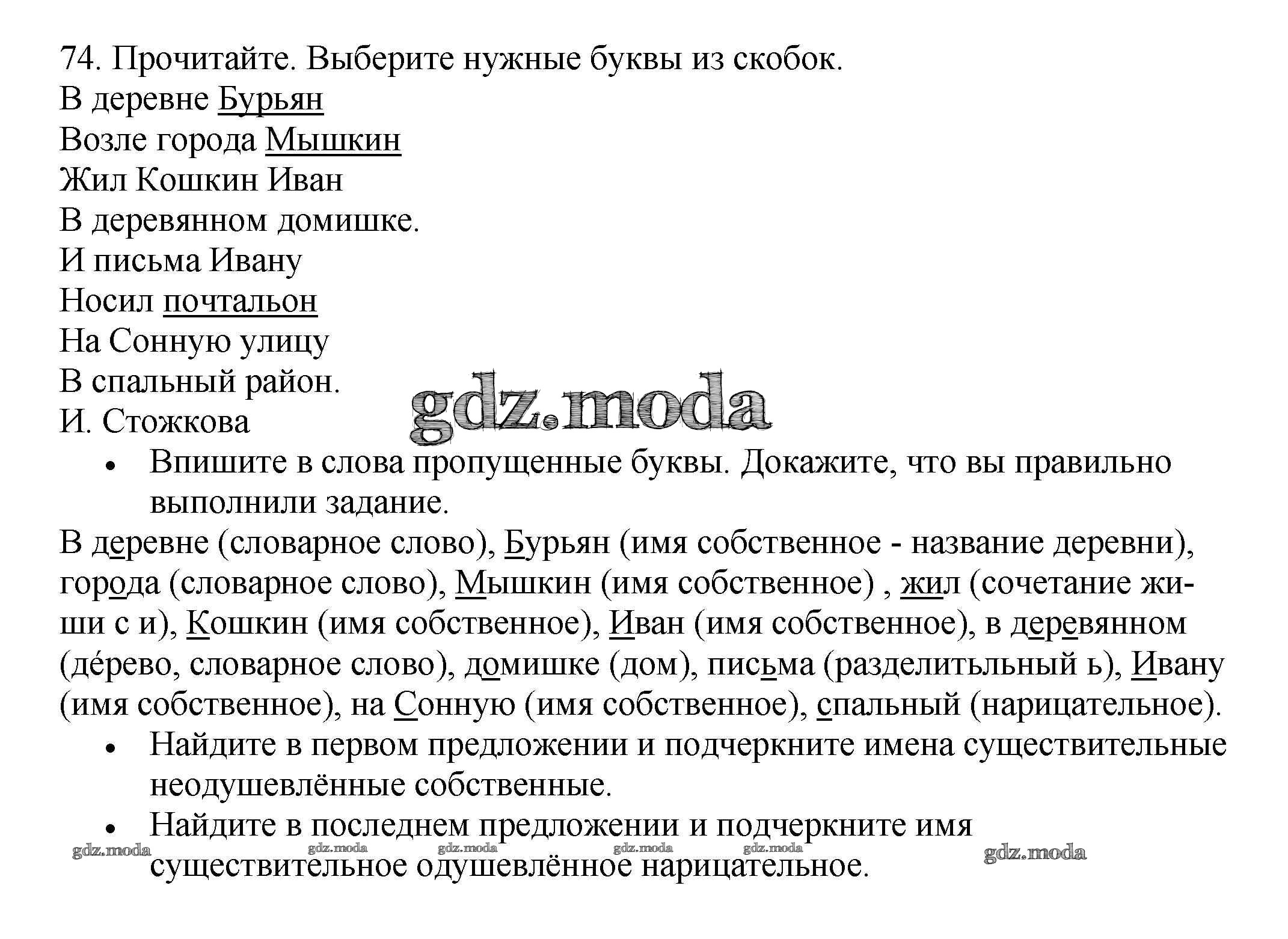 ОТВЕТ на задание № 74 Рабочая тетрадь по Русскому языку 3 класс Канакина Школа России