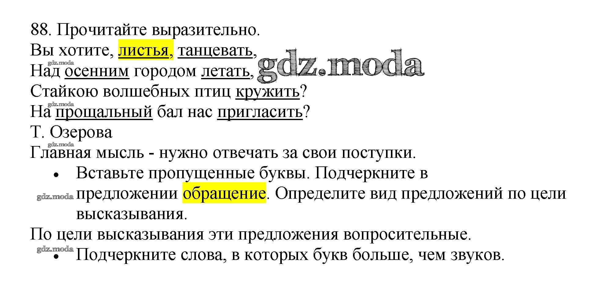 ОТВЕТ на задание № 88 Рабочая тетрадь по Русскому языку 3 класс Канакина Школа России
