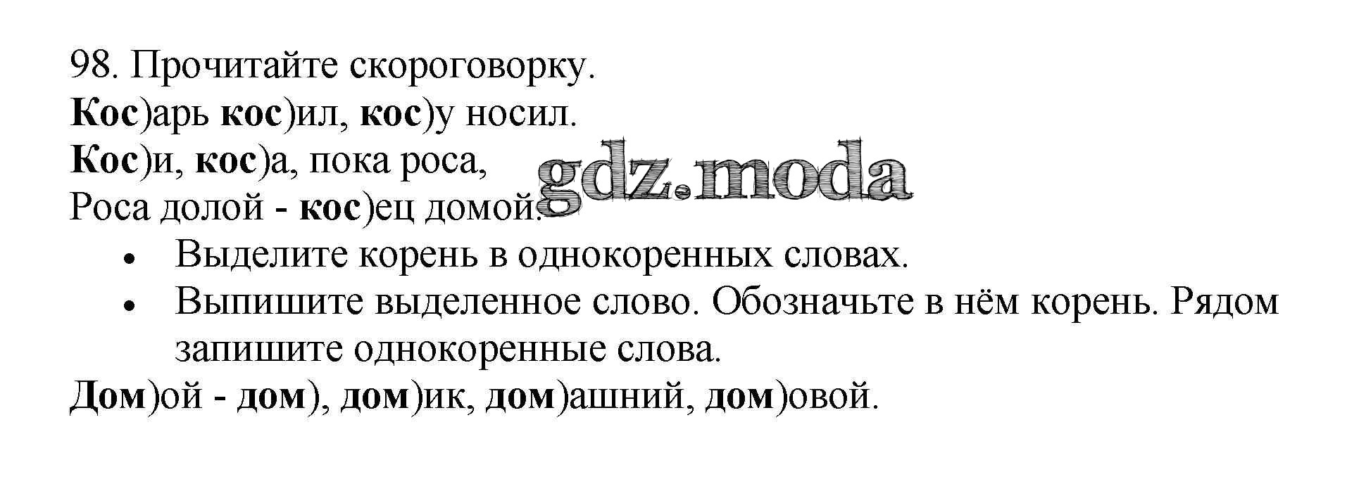 ОТВЕТ на задание № 98 Рабочая тетрадь по Русскому языку 3 класс Канакина Школа России