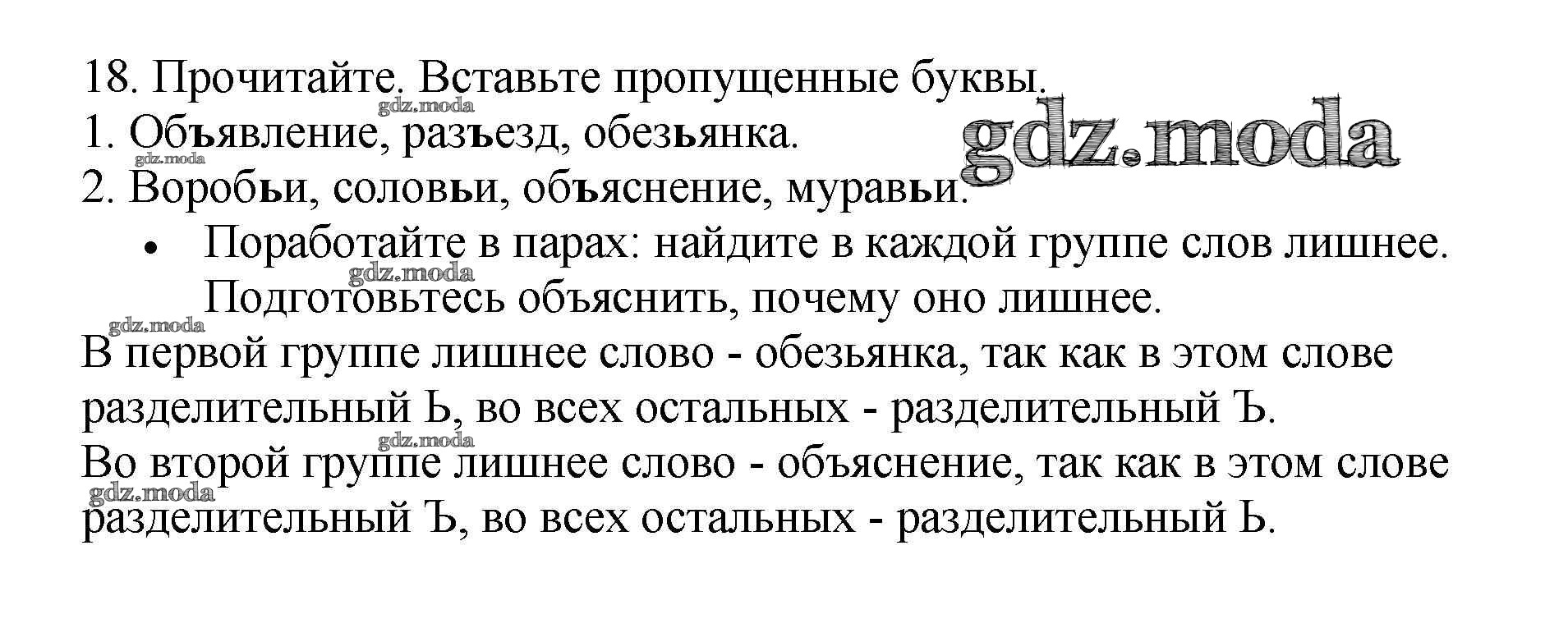 ОТВЕТ на задание № 18 Рабочая тетрадь по Русскому языку 3 класс Канакина Школа России