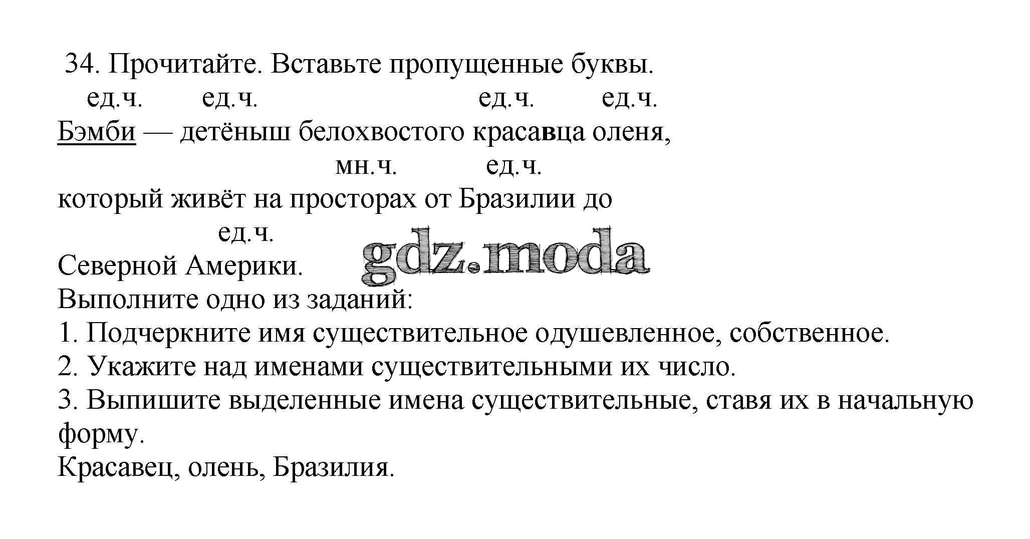 ОТВЕТ на задание № 34 Рабочая тетрадь по Русскому языку 3 класс Канакина Школа России