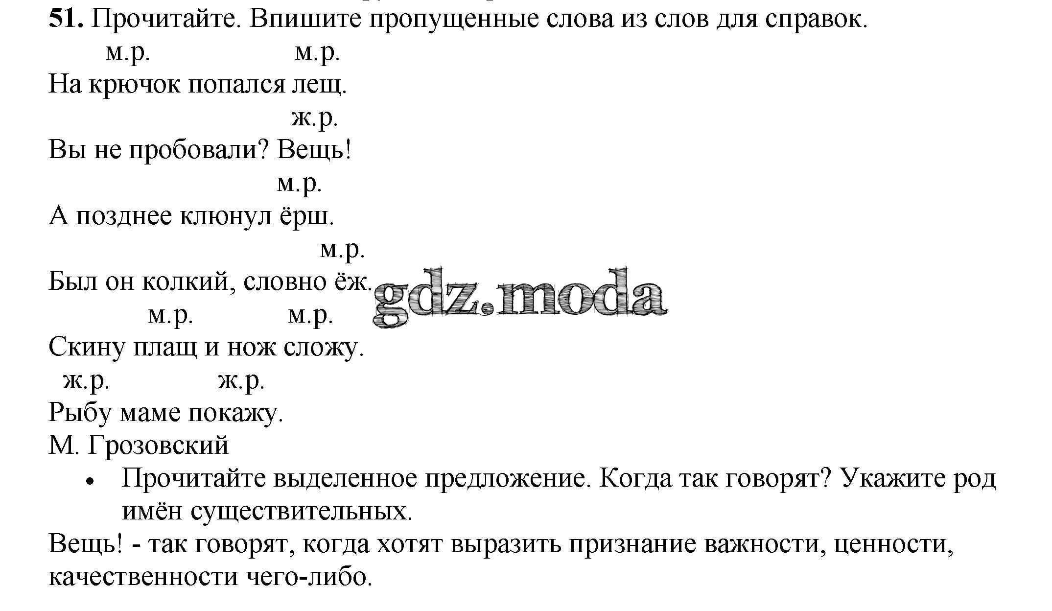 ОТВЕТ на задание № 51 Рабочая тетрадь по Русскому языку 3 класс Канакина Школа России