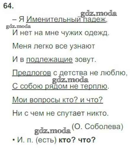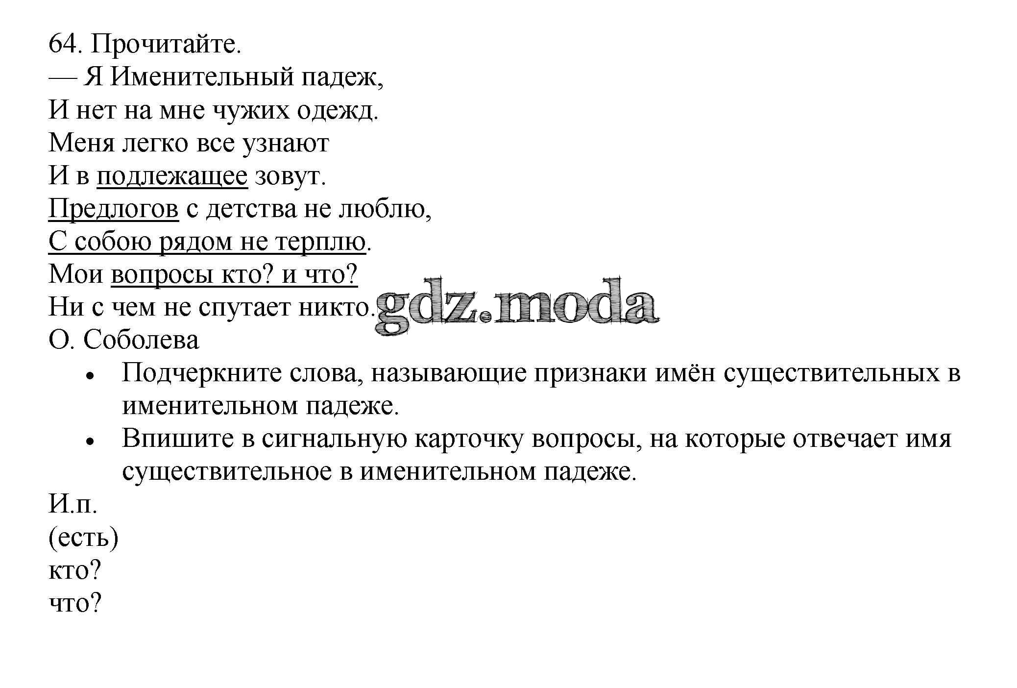 ОТВЕТ на задание № 64 Рабочая тетрадь по Русскому языку 3 класс Канакина Школа России