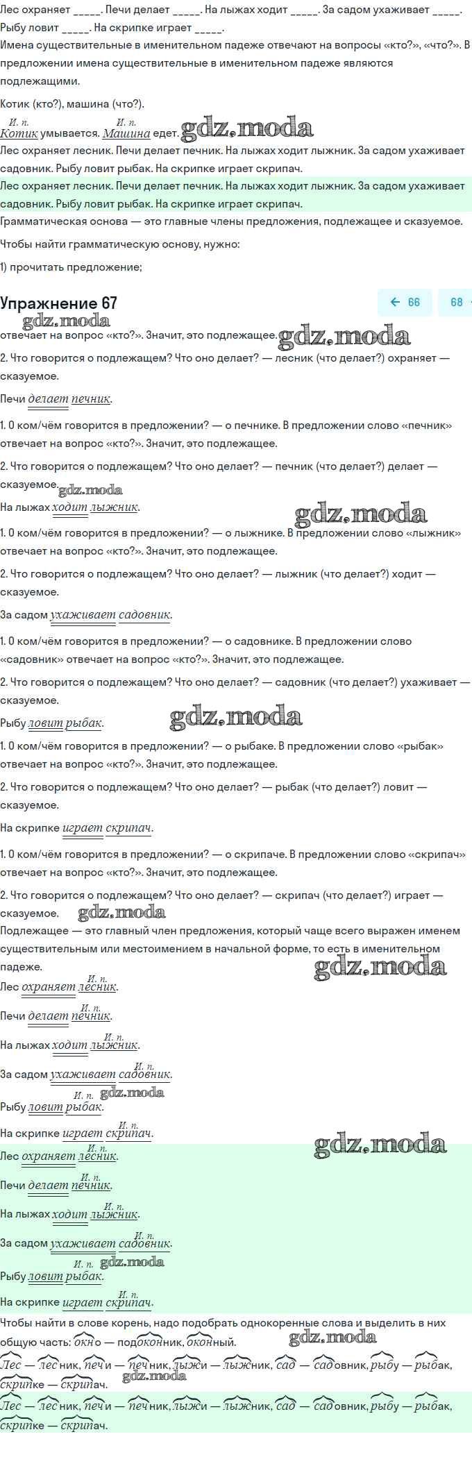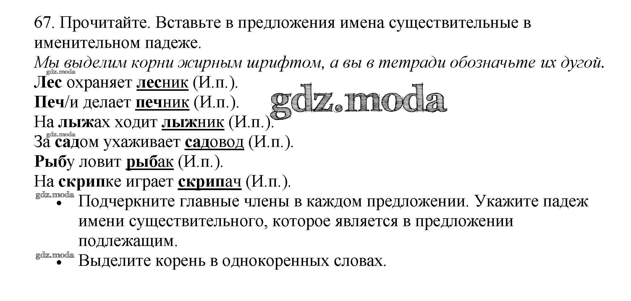 ОТВЕТ на задание № 67 Рабочая тетрадь по Русскому языку 3 класс Канакина Школа России