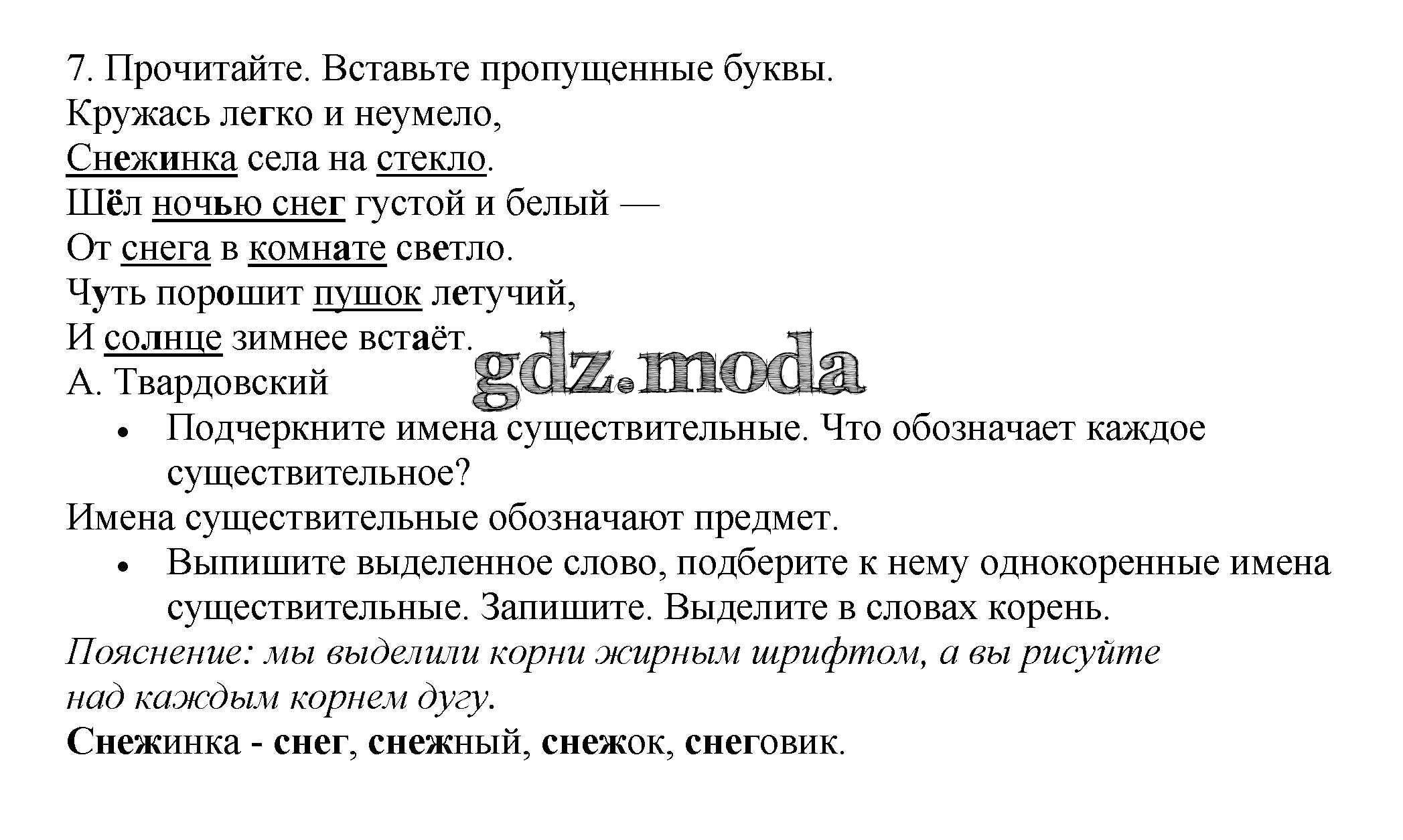 ОТВЕТ на задание № 7 Рабочая тетрадь по Русскому языку 3 класс Канакина Школа России