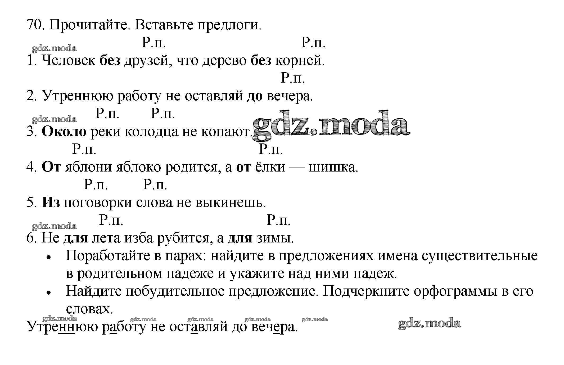 ОТВЕТ на задание № 70 Рабочая тетрадь по Русскому языку 3 класс Канакина Школа России