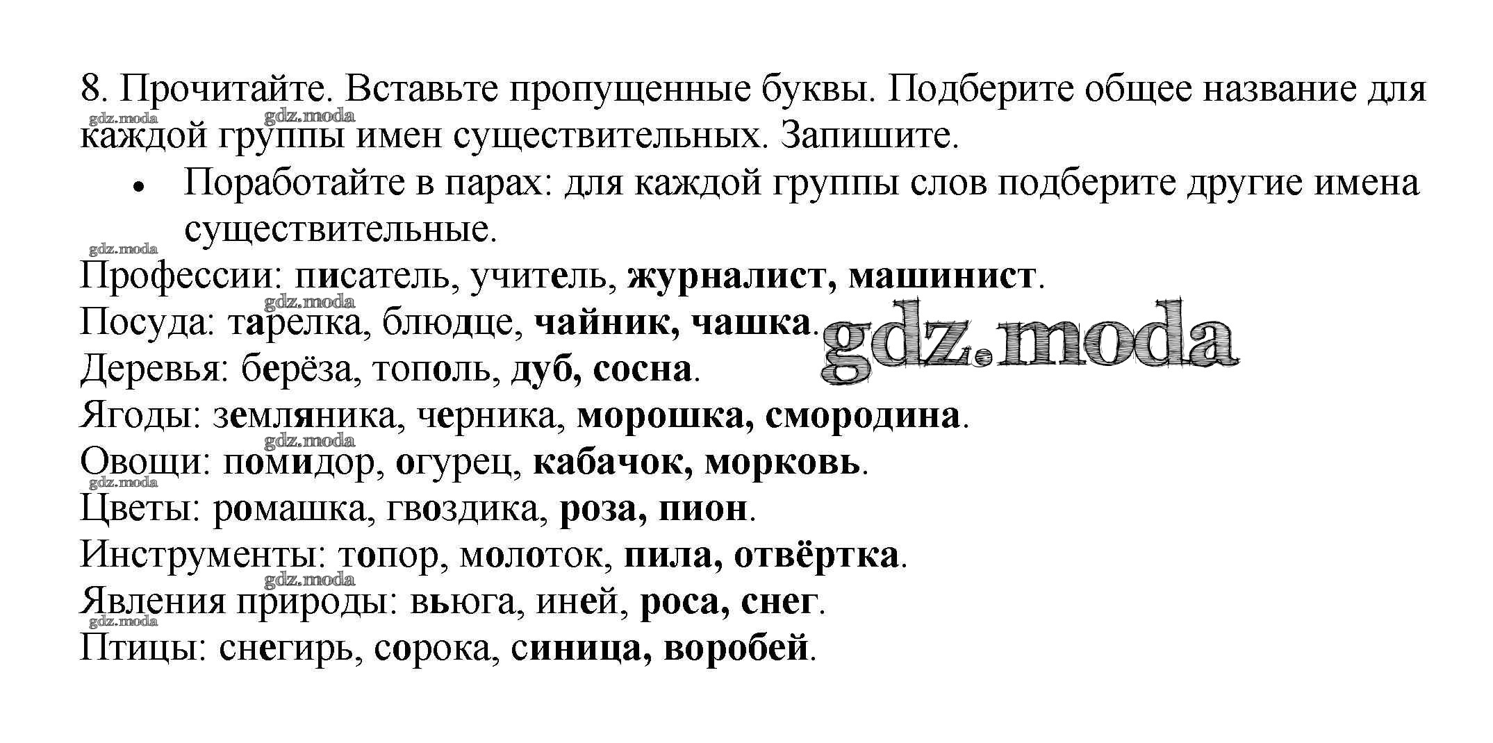 ОТВЕТ на задание № 8 Рабочая тетрадь по Русскому языку 3 класс Канакина Школа России