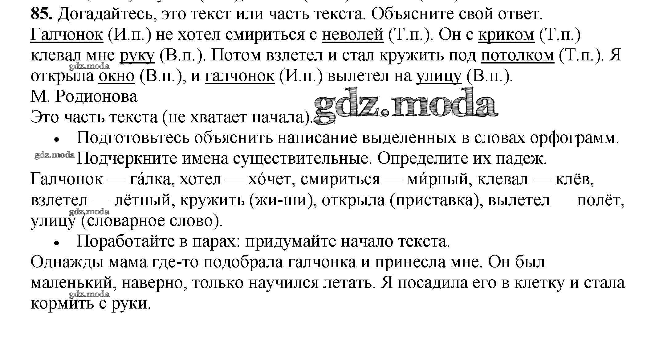 ОТВЕТ на задание № 85 Рабочая тетрадь по Русскому языку 3 класс Канакина Школа России