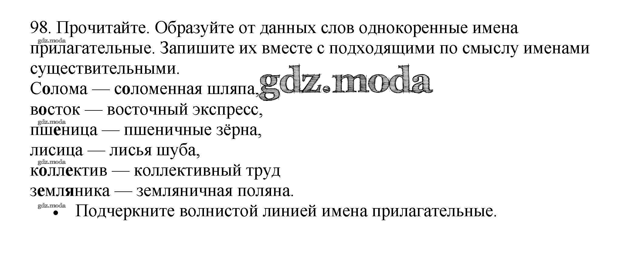 ОТВЕТ на задание № 98 Рабочая тетрадь по Русскому языку 3 класс Канакина Школа России