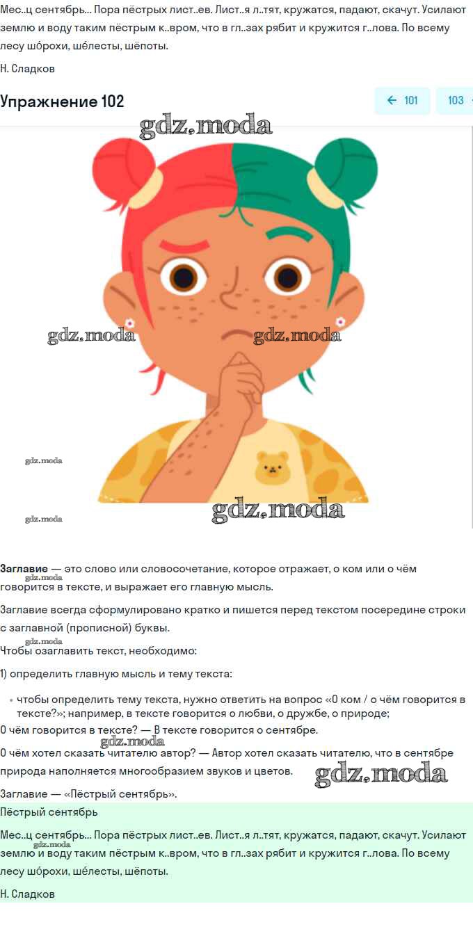 ОТВЕТ на задание № 102 Учебник по Русскому языку 3 класс Канакина Школа России