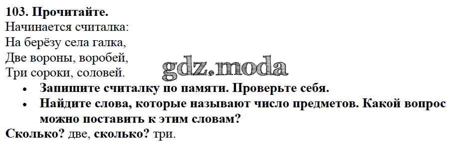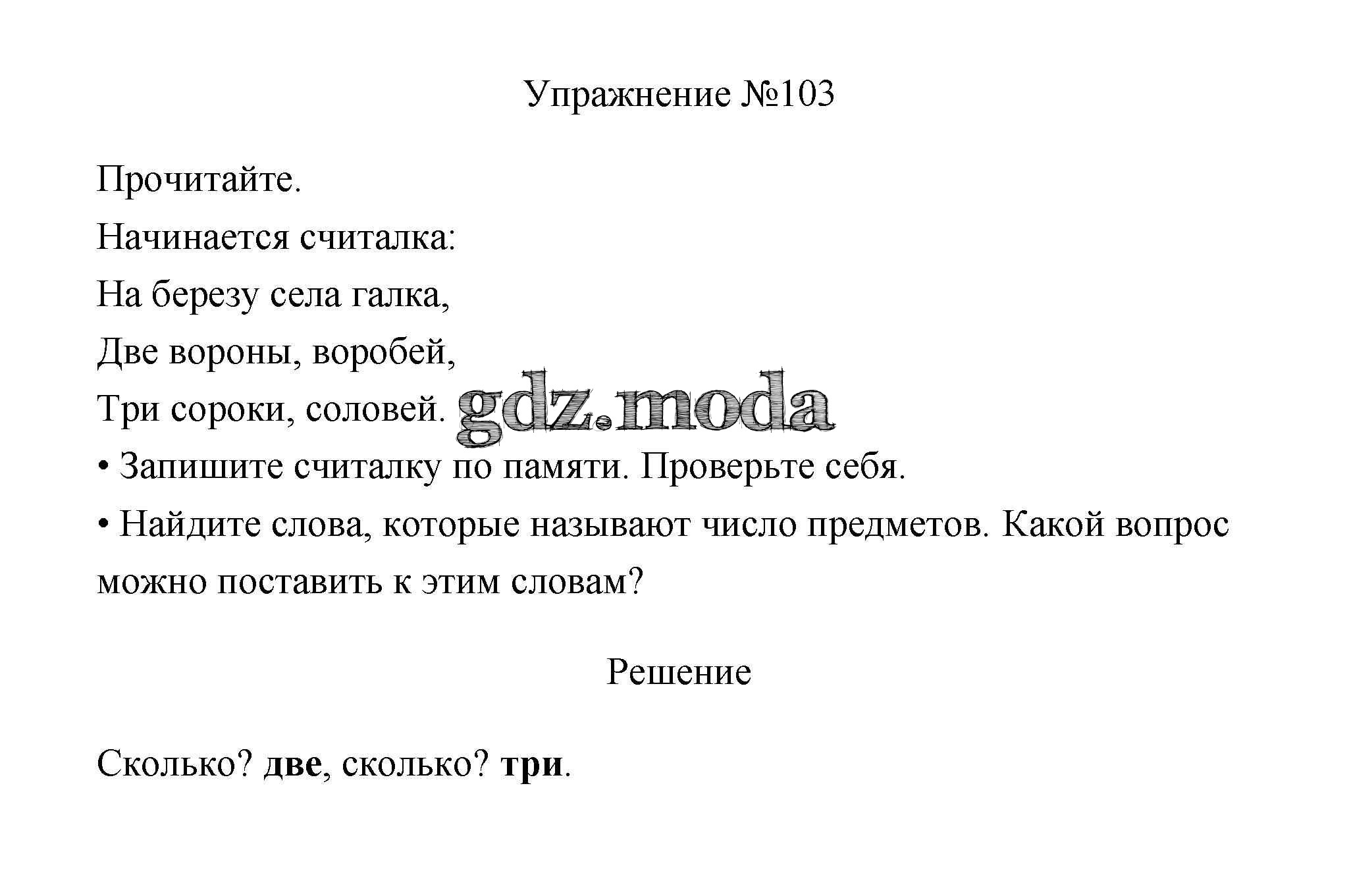 ОТВЕТ на задание № 103 Учебник по Русскому языку 3 класс Канакина Школа России