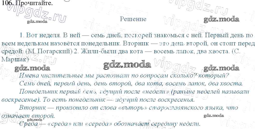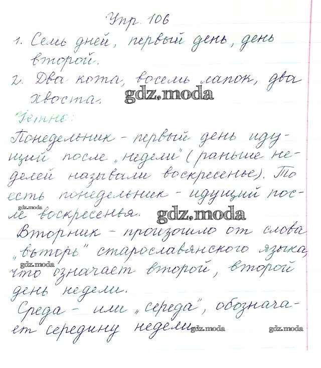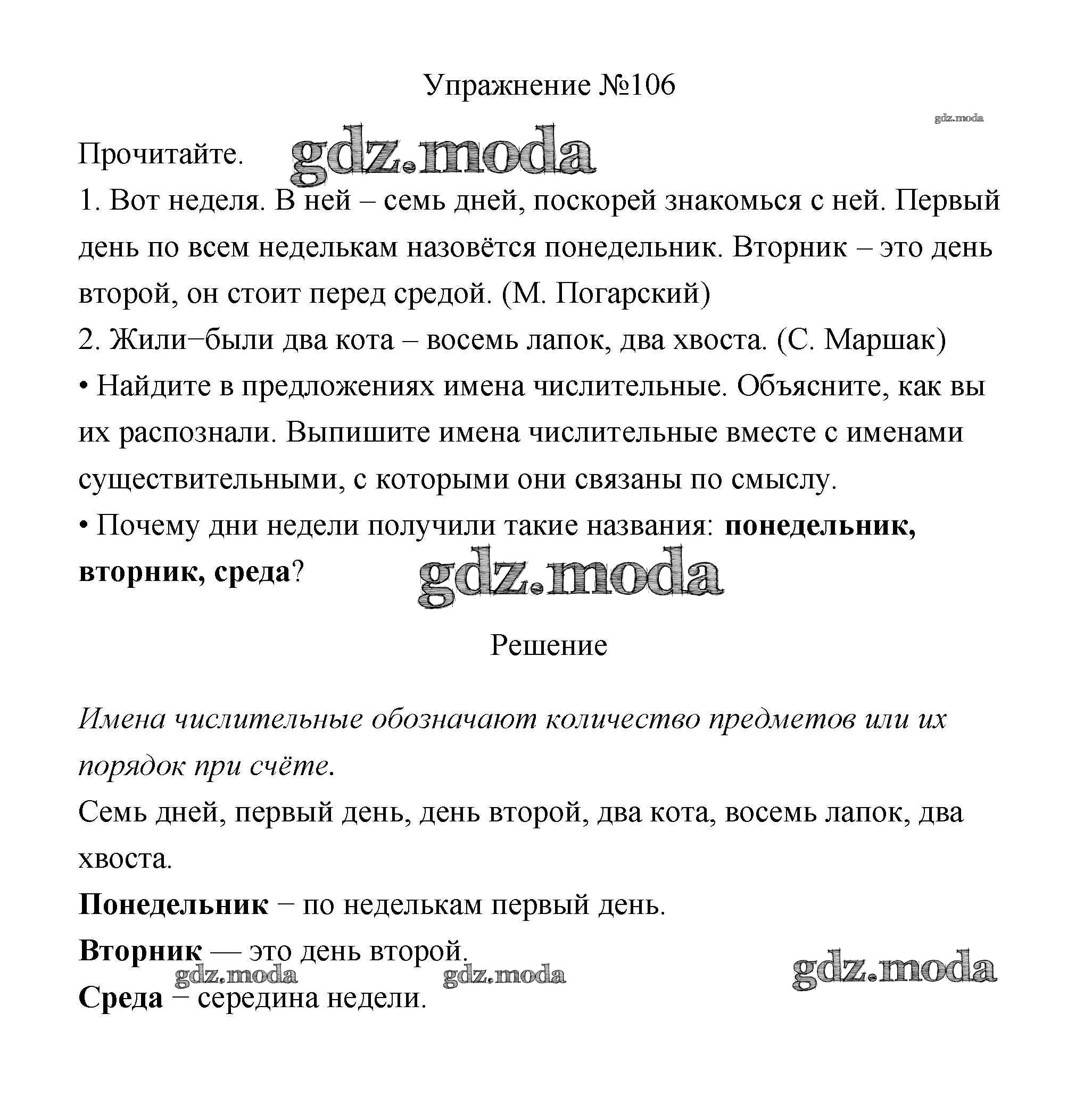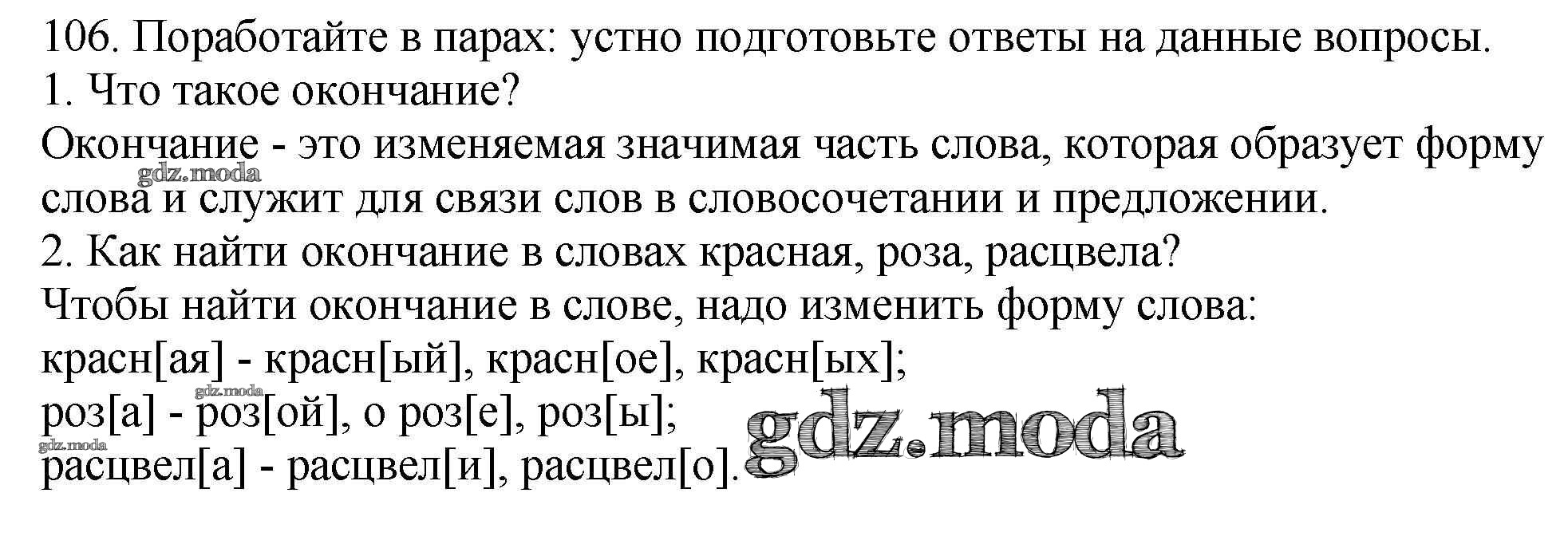 ОТВЕТ на задание № 106 Учебник по Русскому языку 3 класс Канакина Школа России