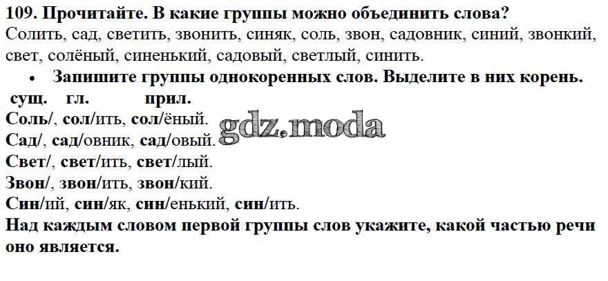ОТВЕТ на задание № 109 Учебник по Русскому языку 3 класс Канакина Школа России