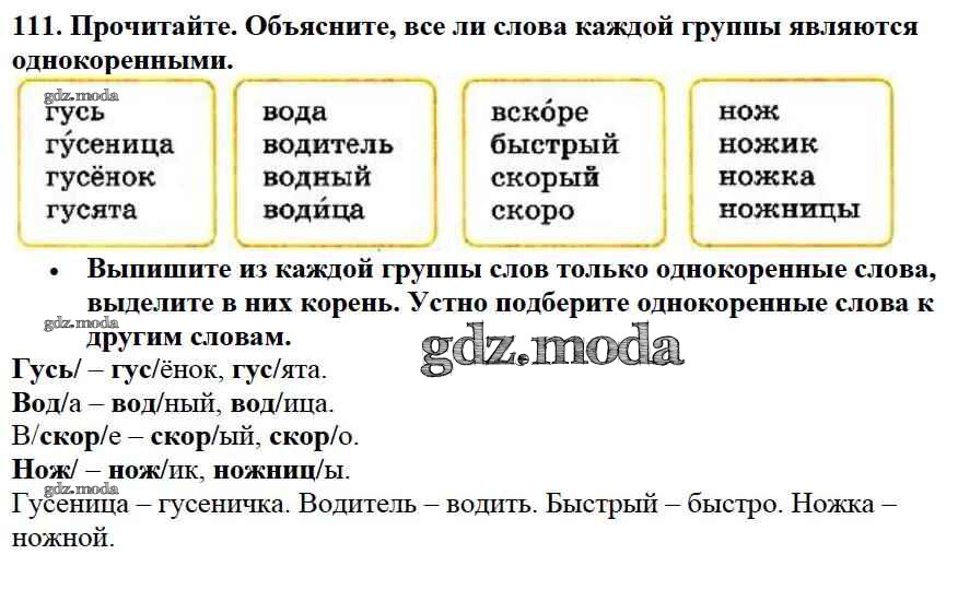 ОТВЕТ на задание № 111 Учебник по Русскому языку 3 класс Канакина Школа России