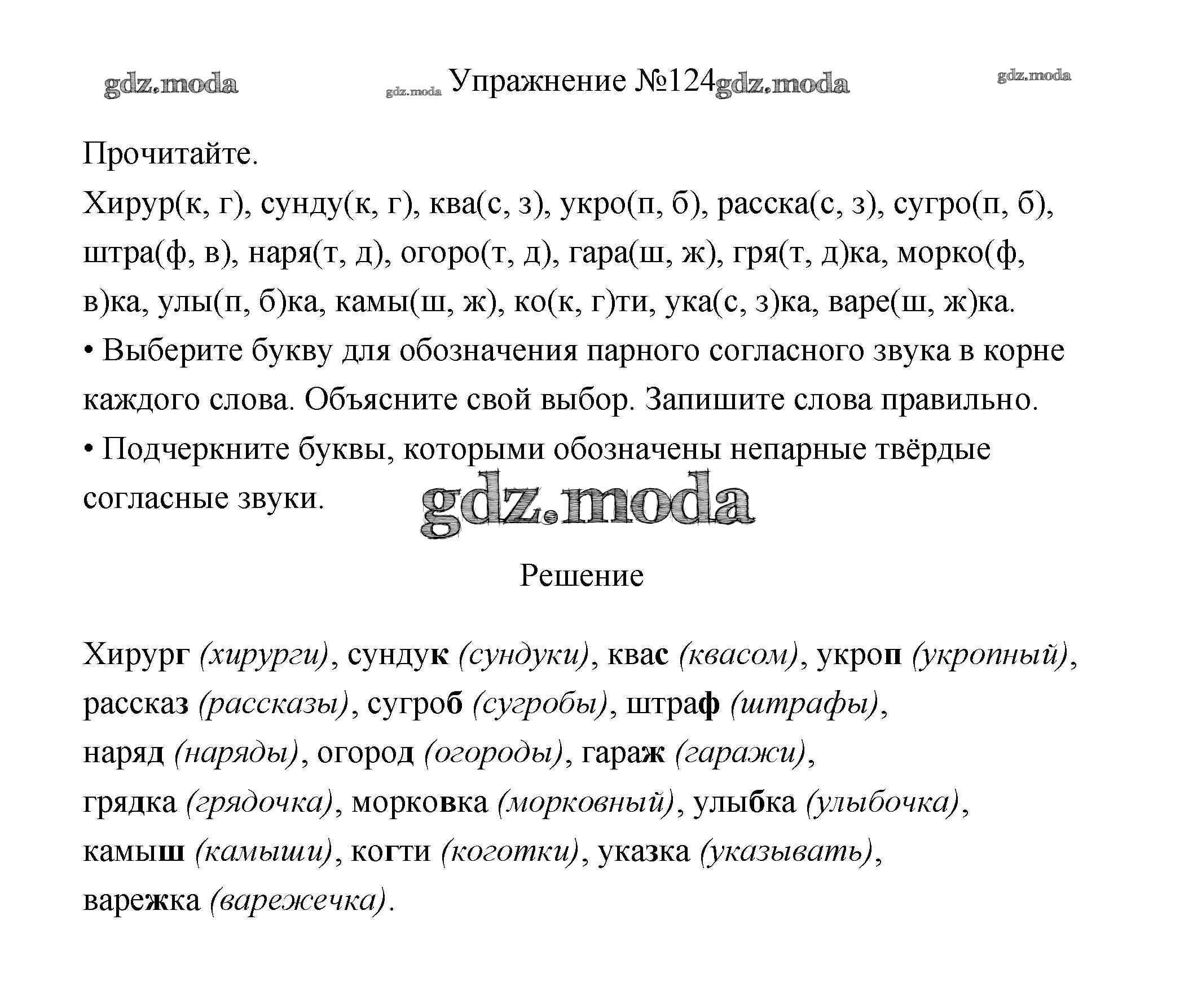 ОТВЕТ на задание № 124 Учебник по Русскому языку 3 класс Канакина Школа России