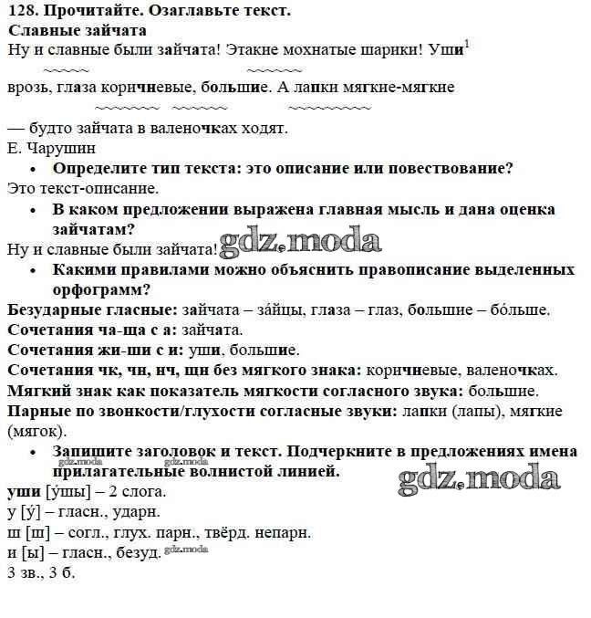 ОТВЕТ на задание № 128 Учебник по Русскому языку 3 класс Канакина Школа России