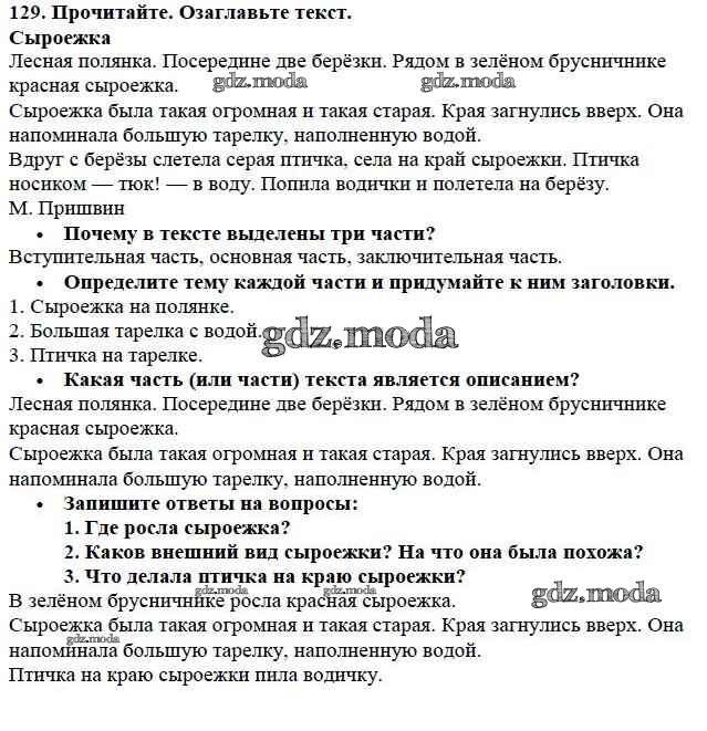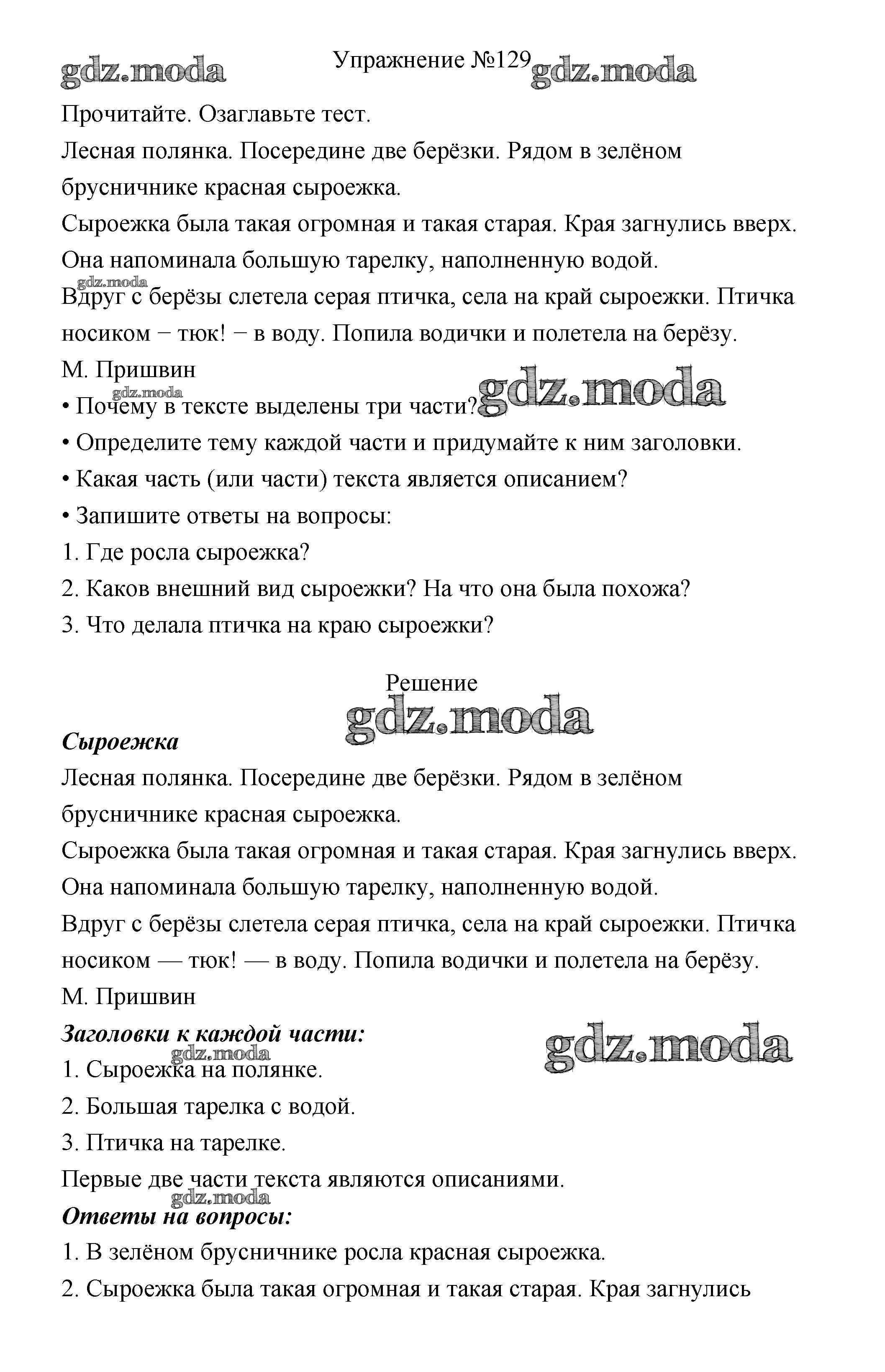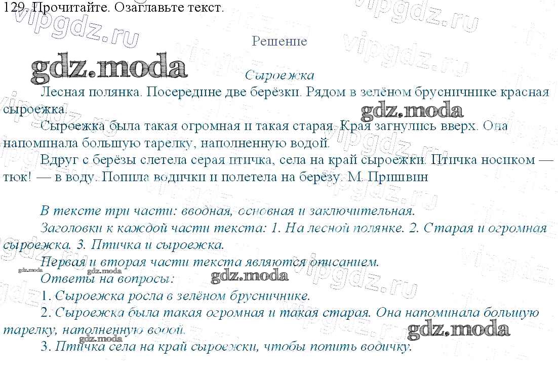 ОТВЕТ на задание № 129 Учебник по Русскому языку 3 класс Канакина Школа России