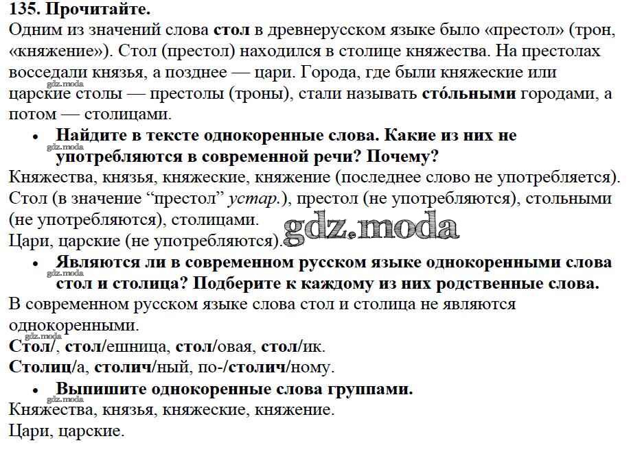 ОТВЕТ на задание № 135 Учебник по Русскому языку 3 класс Канакина Школа России