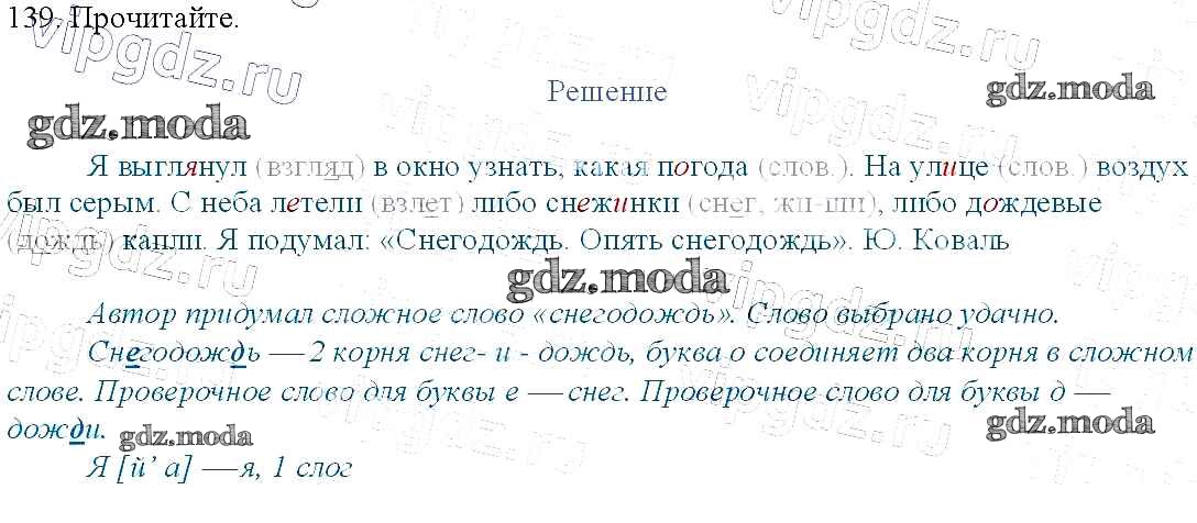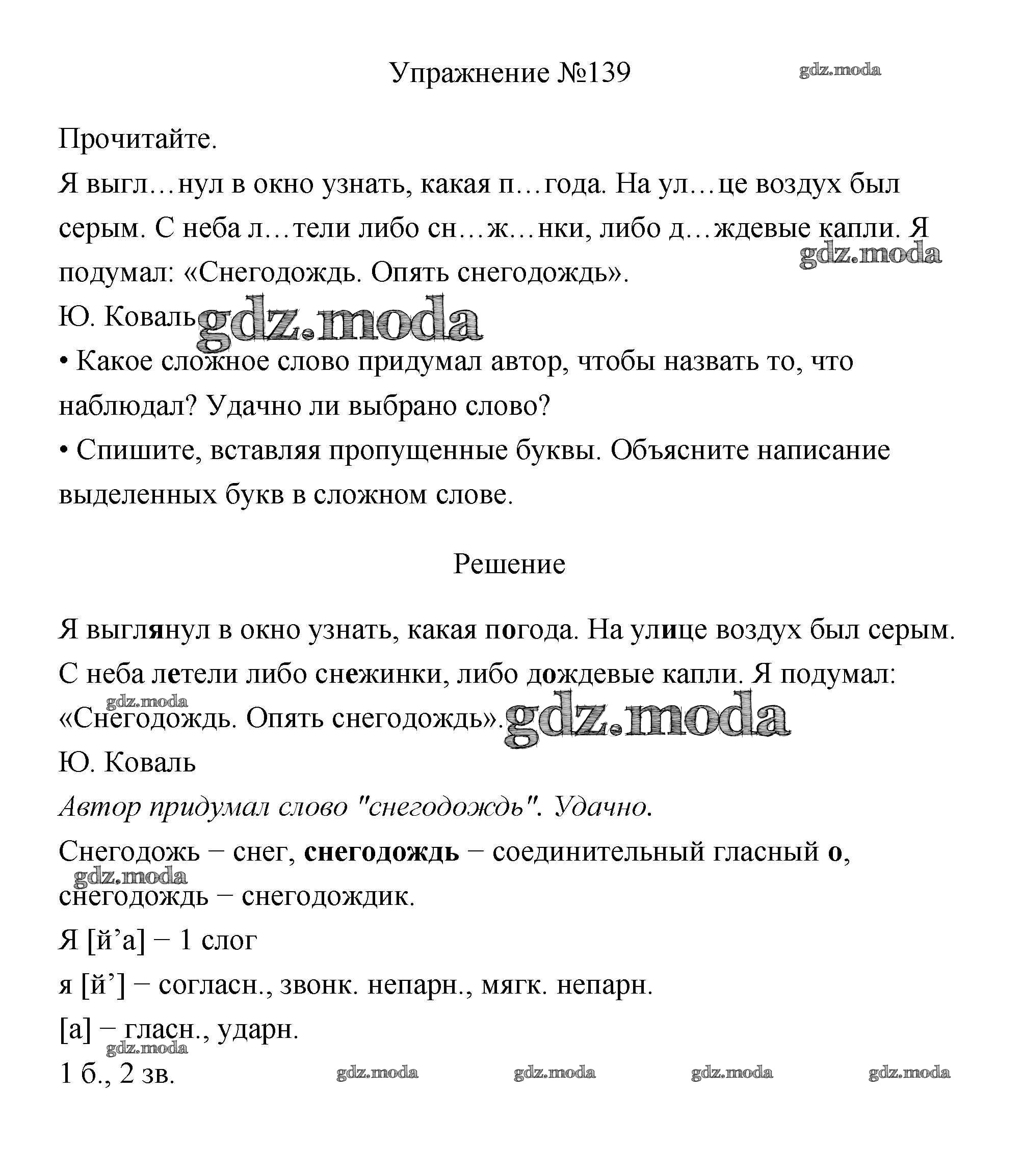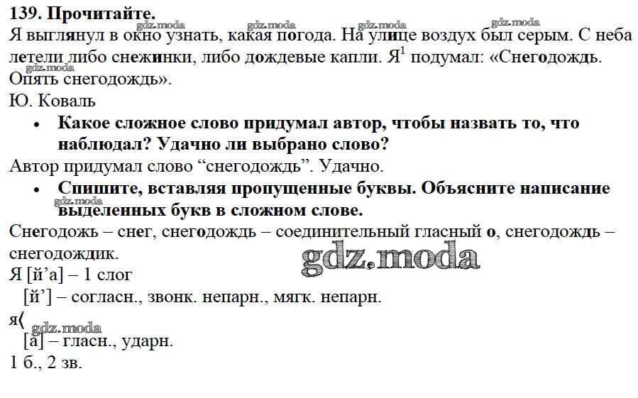 ОТВЕТ на задание № 139 Учебник по Русскому языку 3 класс Канакина Школа России