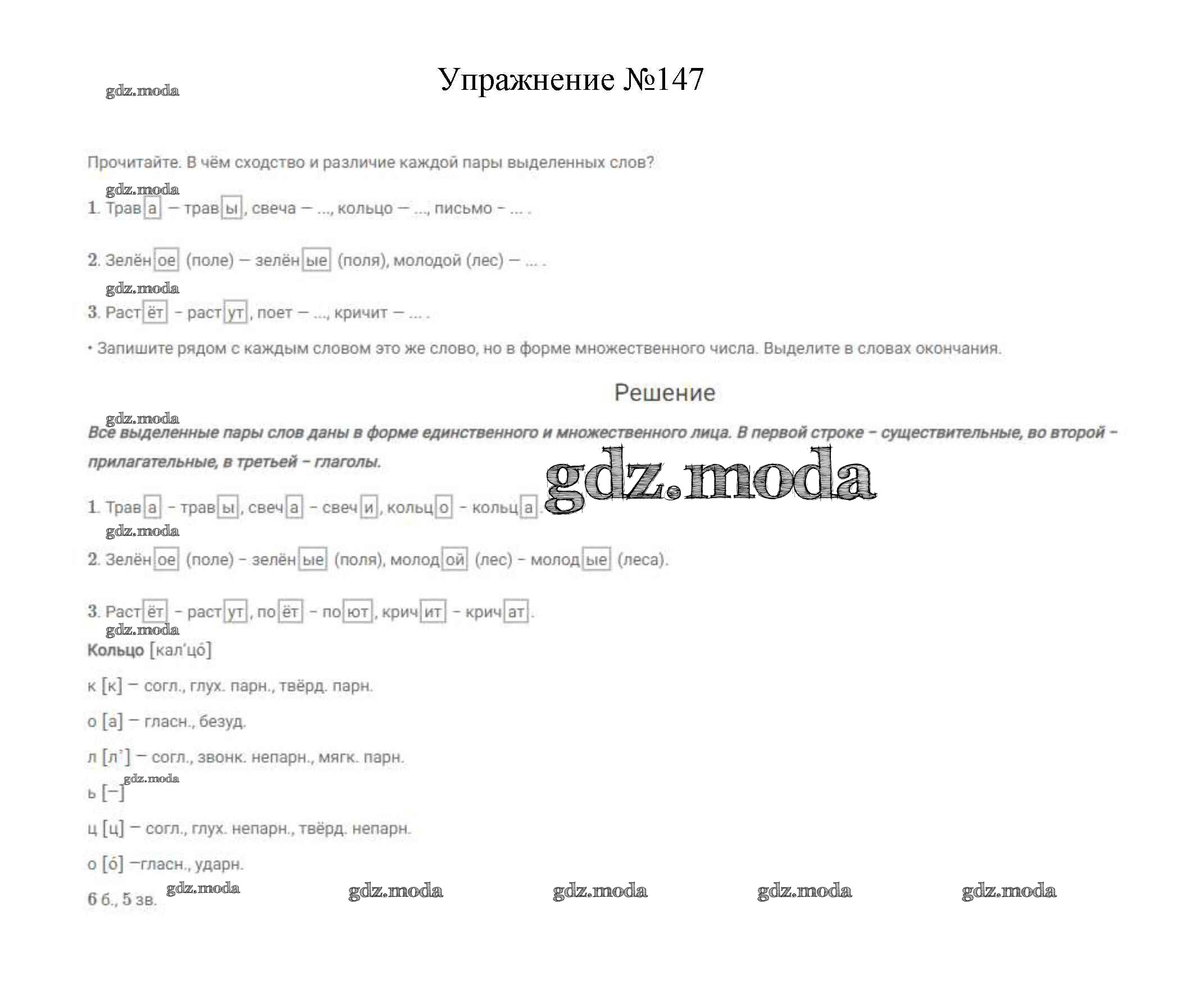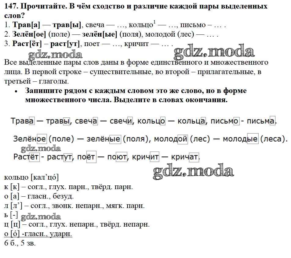 ОТВЕТ на задание № 147 Учебник по Русскому языку 3 класс Канакина Школа России