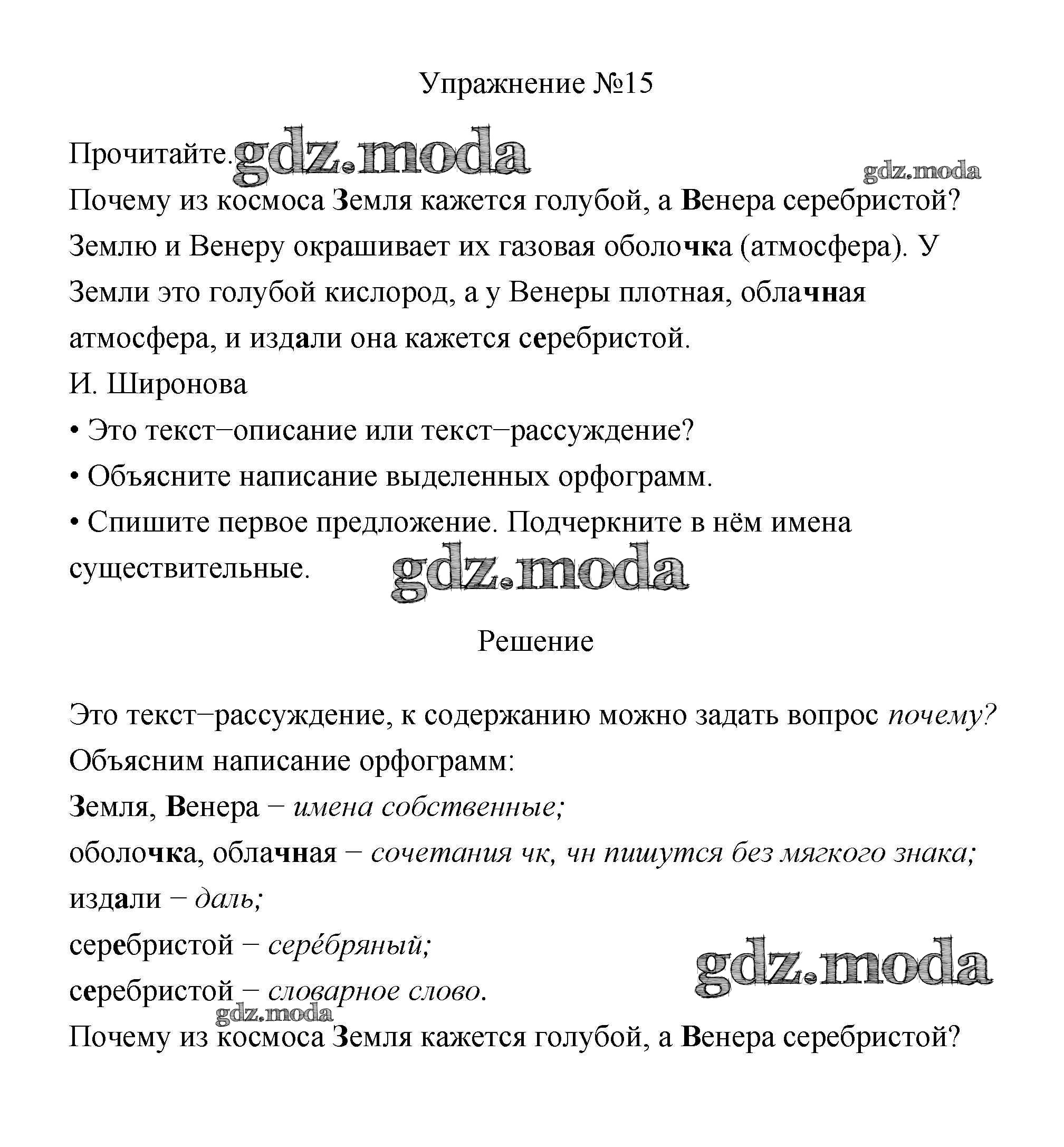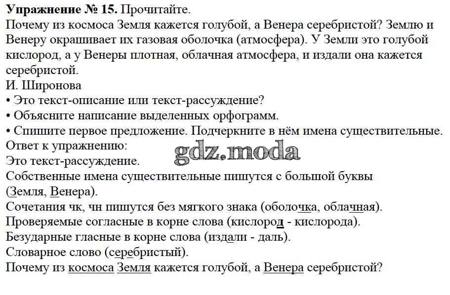 ОТВЕТ на задание № 15 Учебник по Русскому языку 3 класс Канакина Школа России