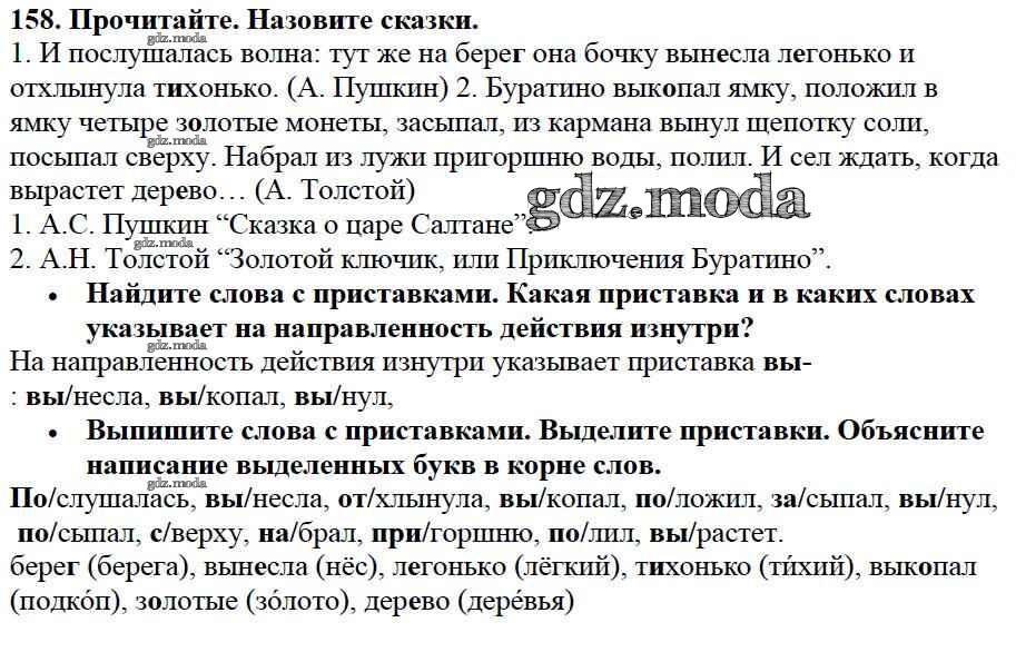 ОТВЕТ на задание № 158 Учебник по Русскому языку 3 класс Канакина Школа России