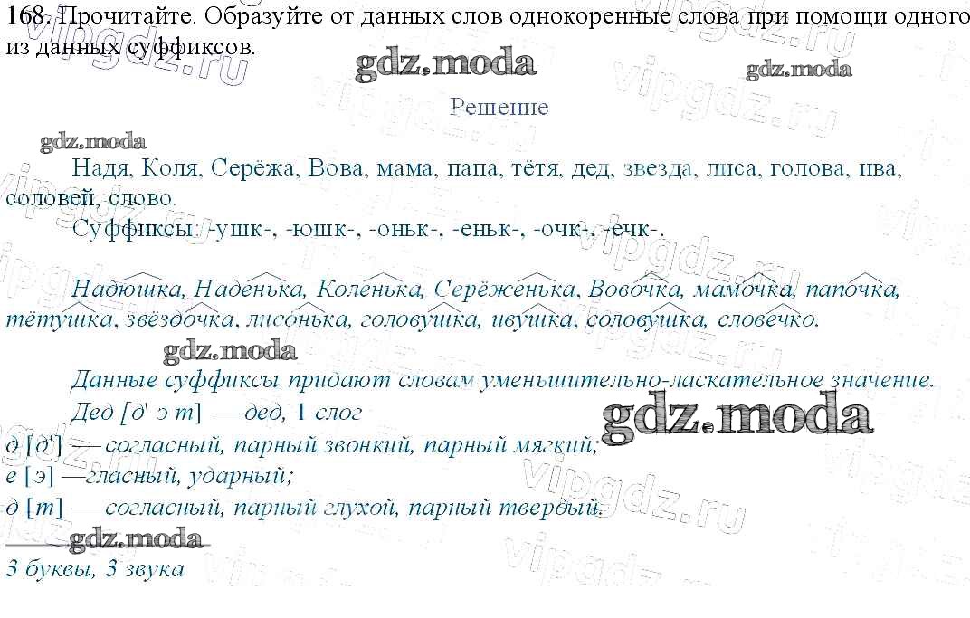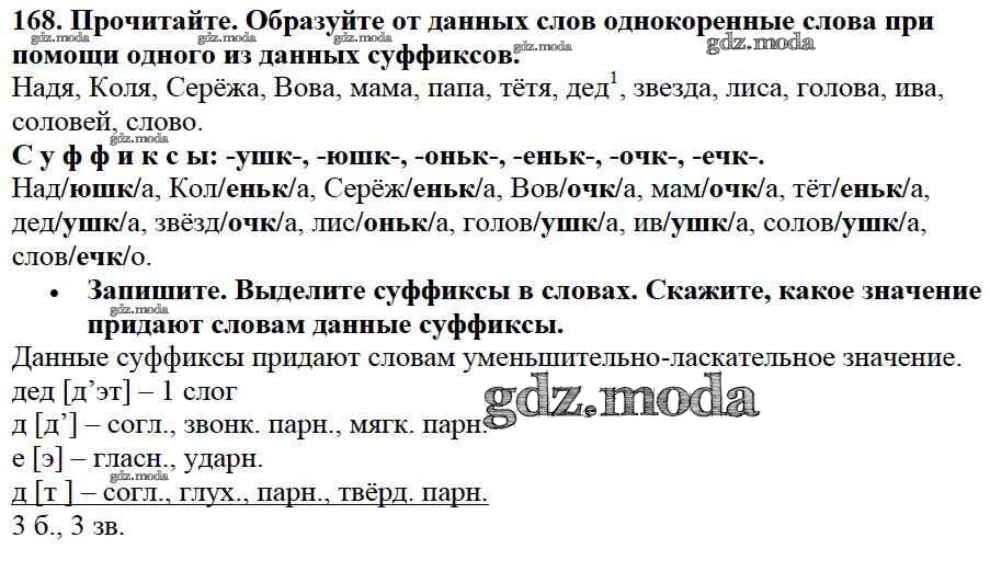 ОТВЕТ на задание № 168 Учебник по Русскому языку 3 класс Канакина Школа России