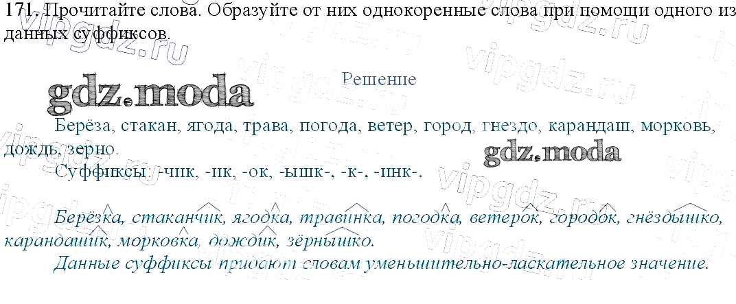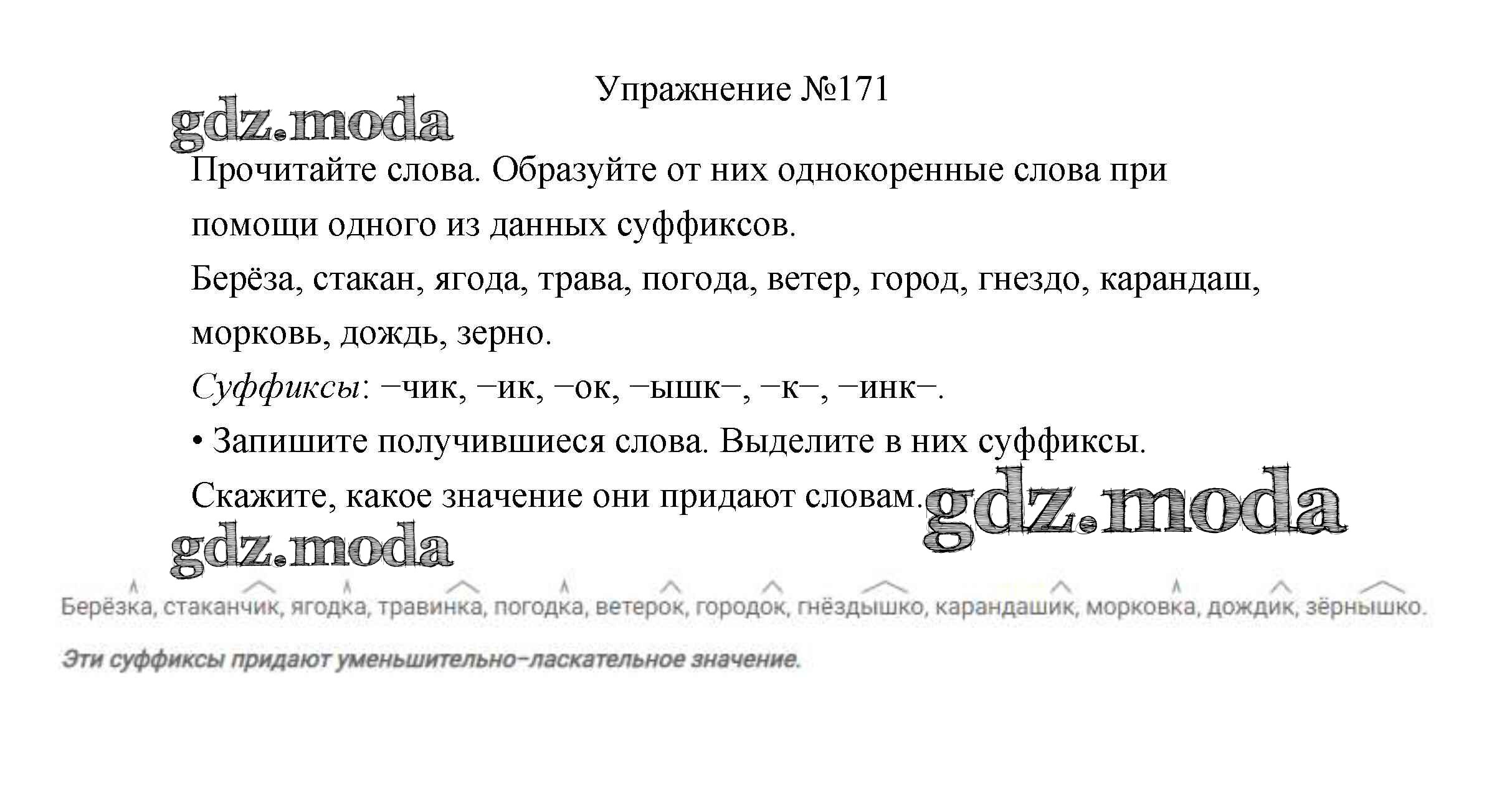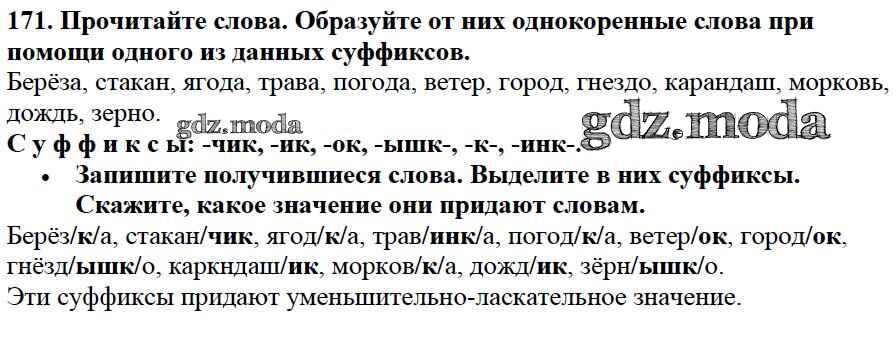 ОТВЕТ на задание № 171 Учебник по Русскому языку 3 класс Канакина Школа России