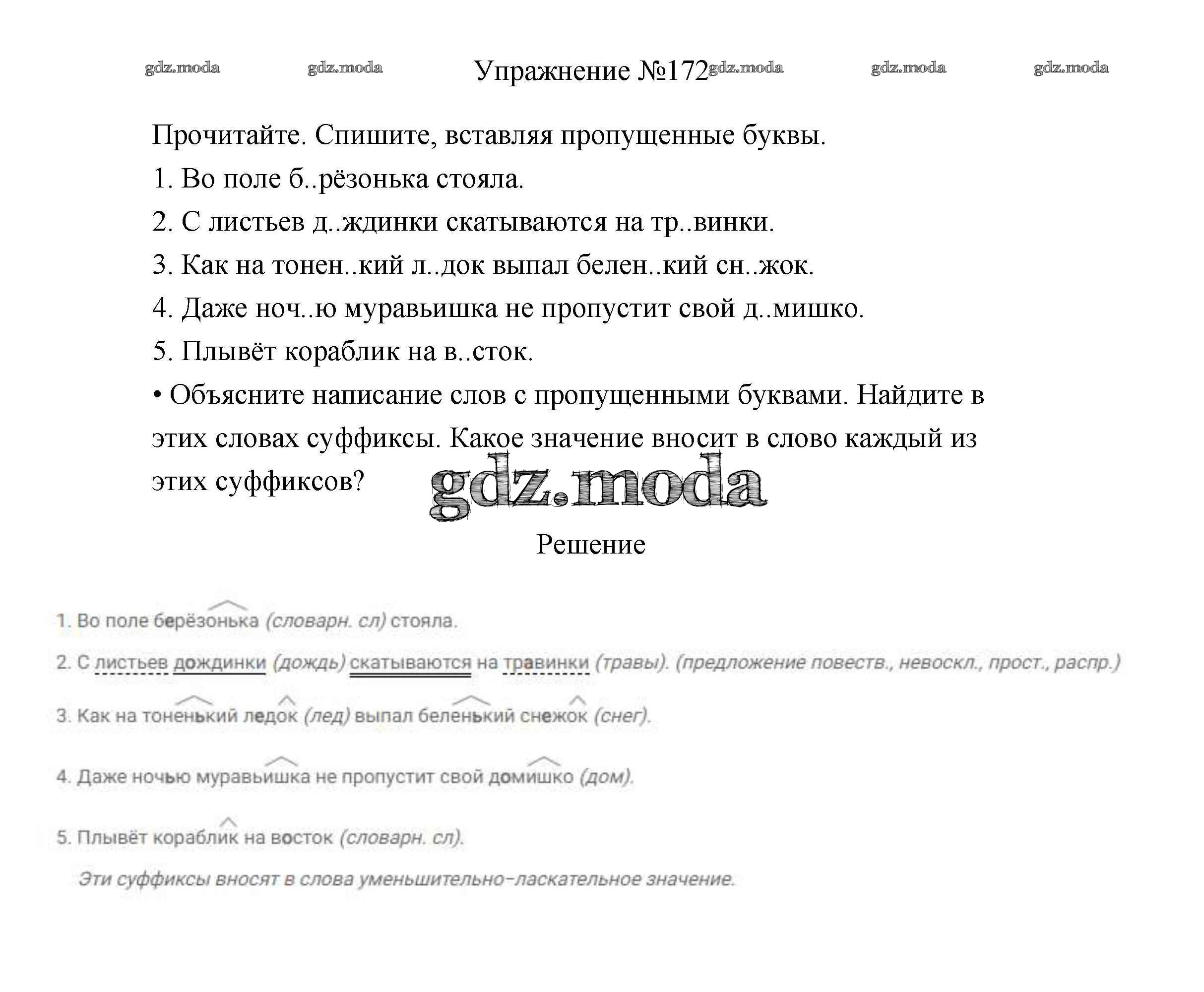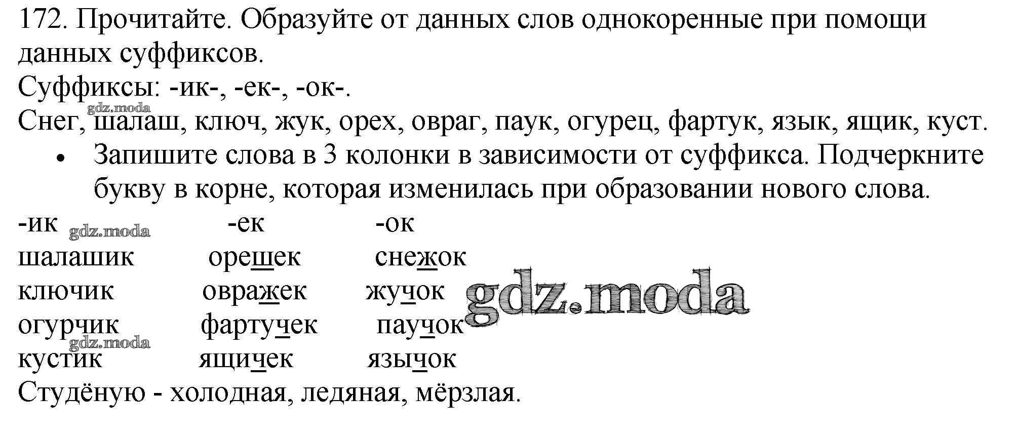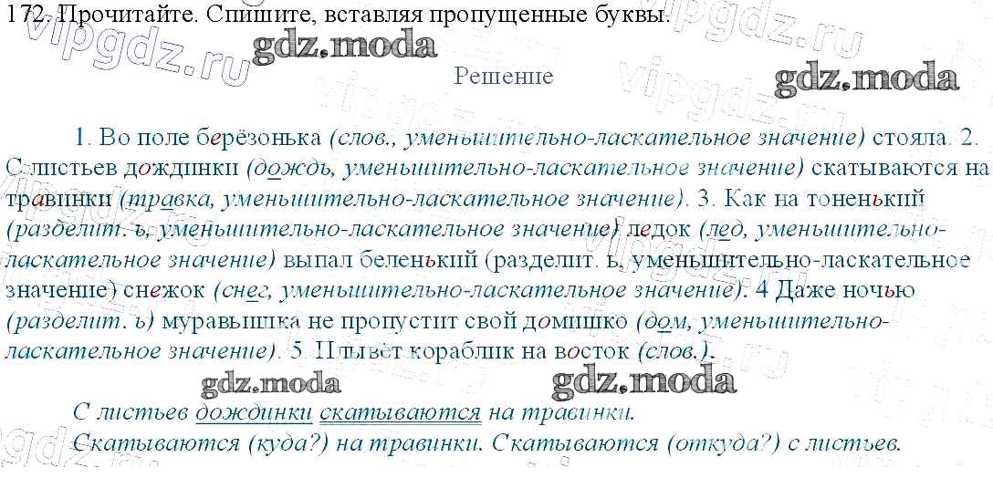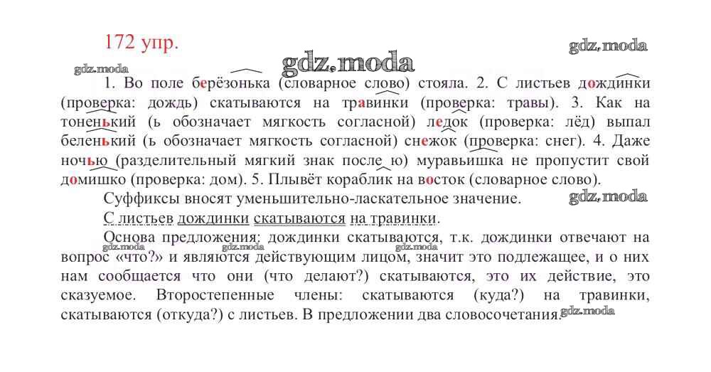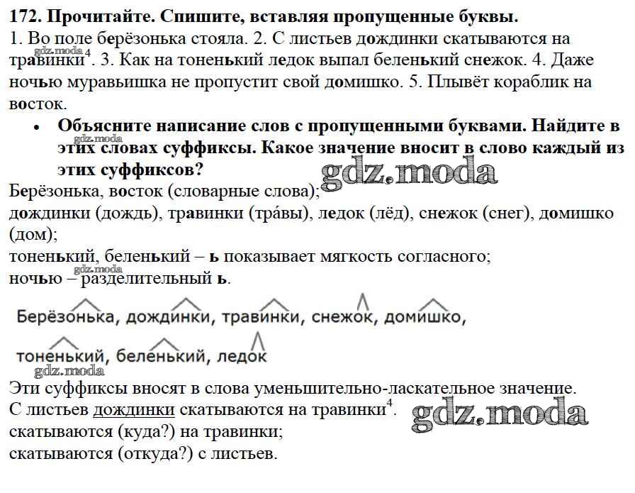 ОТВЕТ на задание № 172 Учебник по Русскому языку 3 класс Канакина Школа России