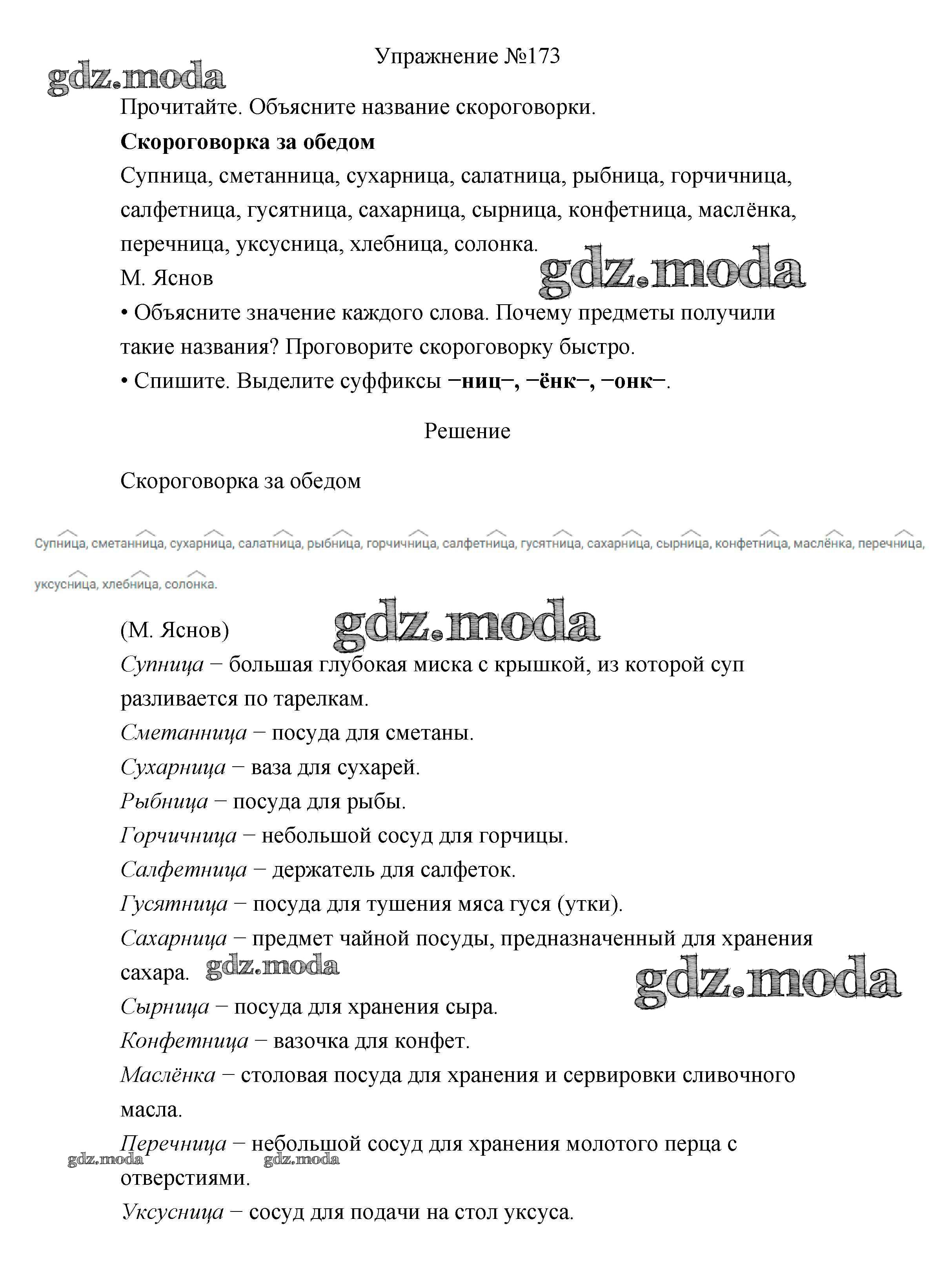 ОТВЕТ на задание № 173 Учебник по Русскому языку 3 класс Канакина Школа России