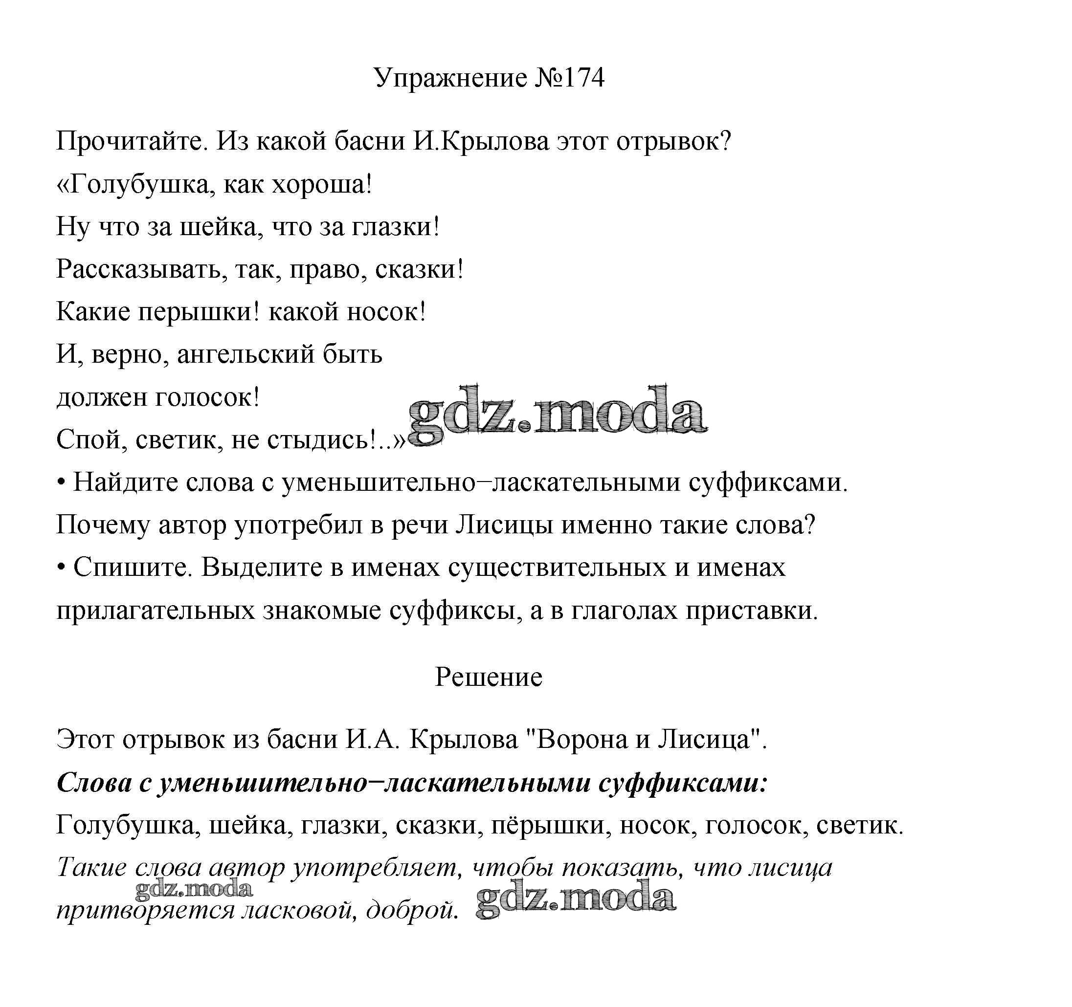 ОТВЕТ на задание № 174 Учебник по Русскому языку 3 класс Канакина Школа России