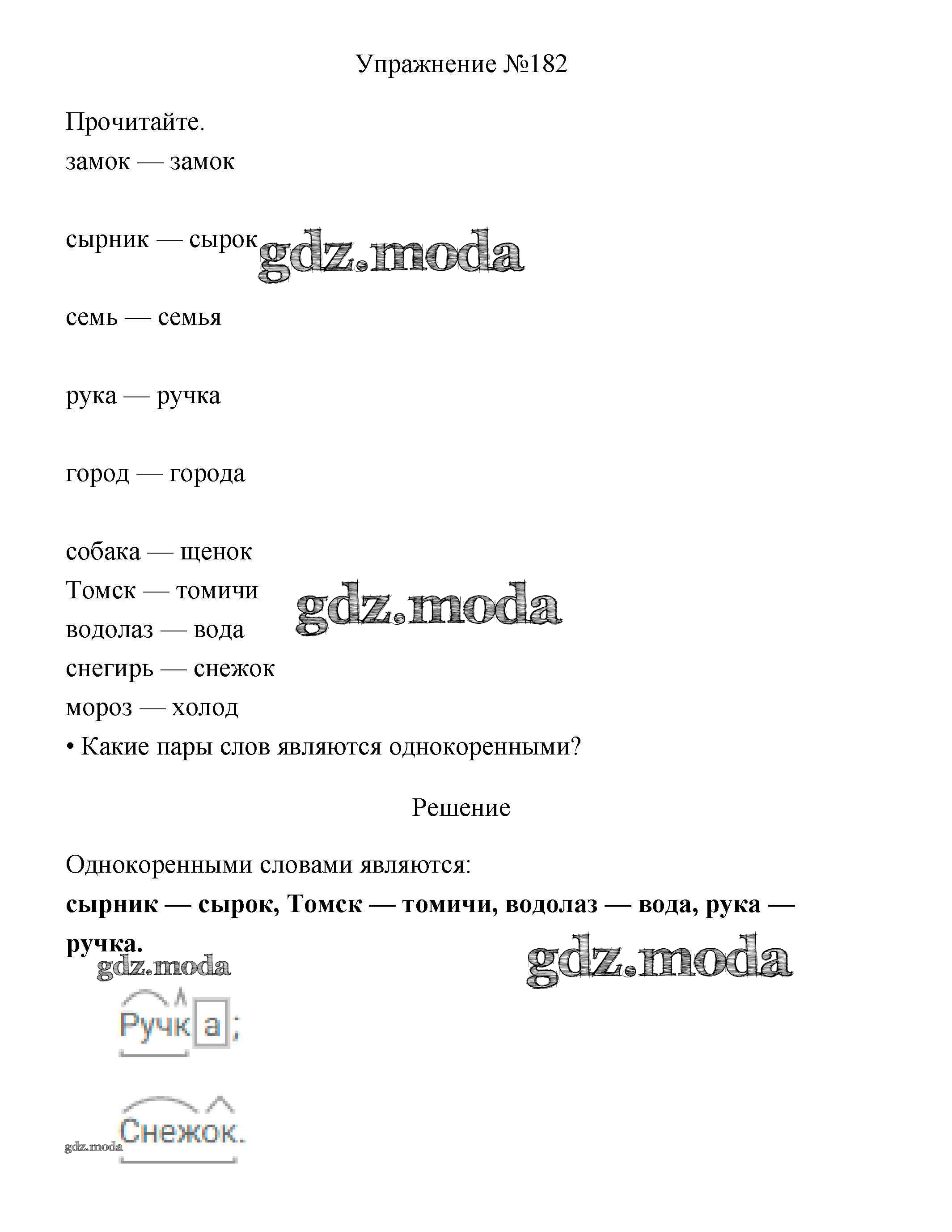 ОТВЕТ на задание № 182 Учебник по Русскому языку 3 класс Канакина Школа России