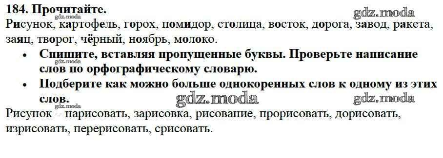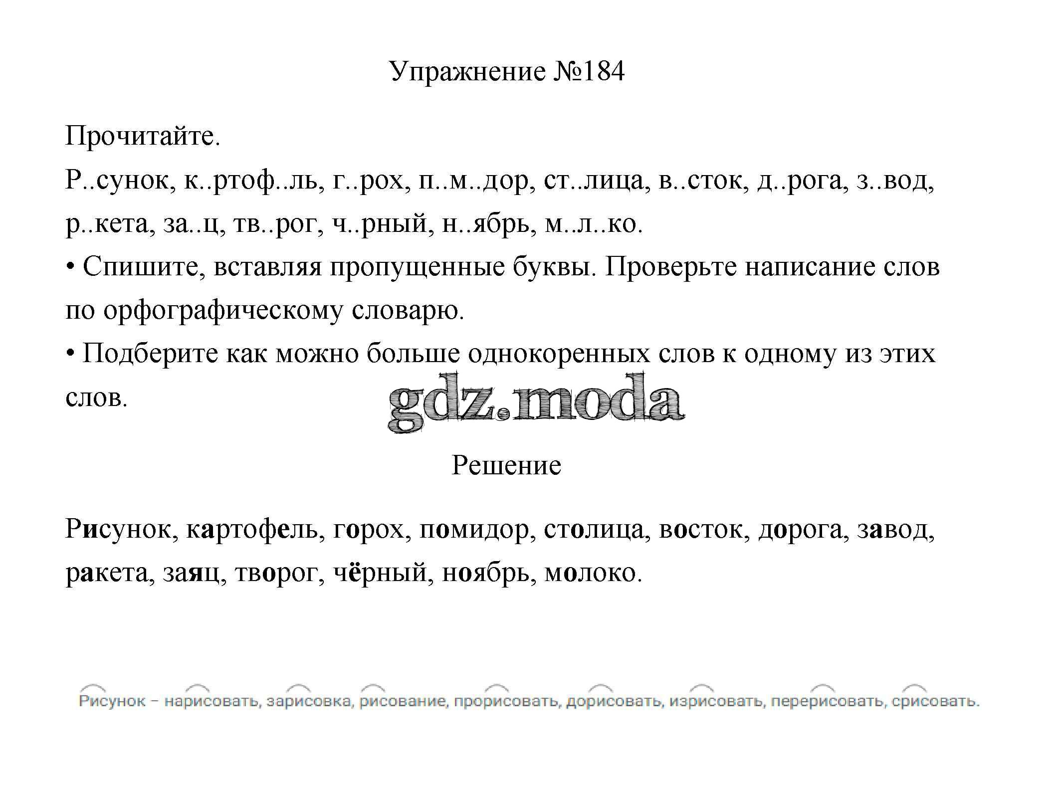 ОТВЕТ на задание № 184 Учебник по Русскому языку 3 класс Канакина Школа России