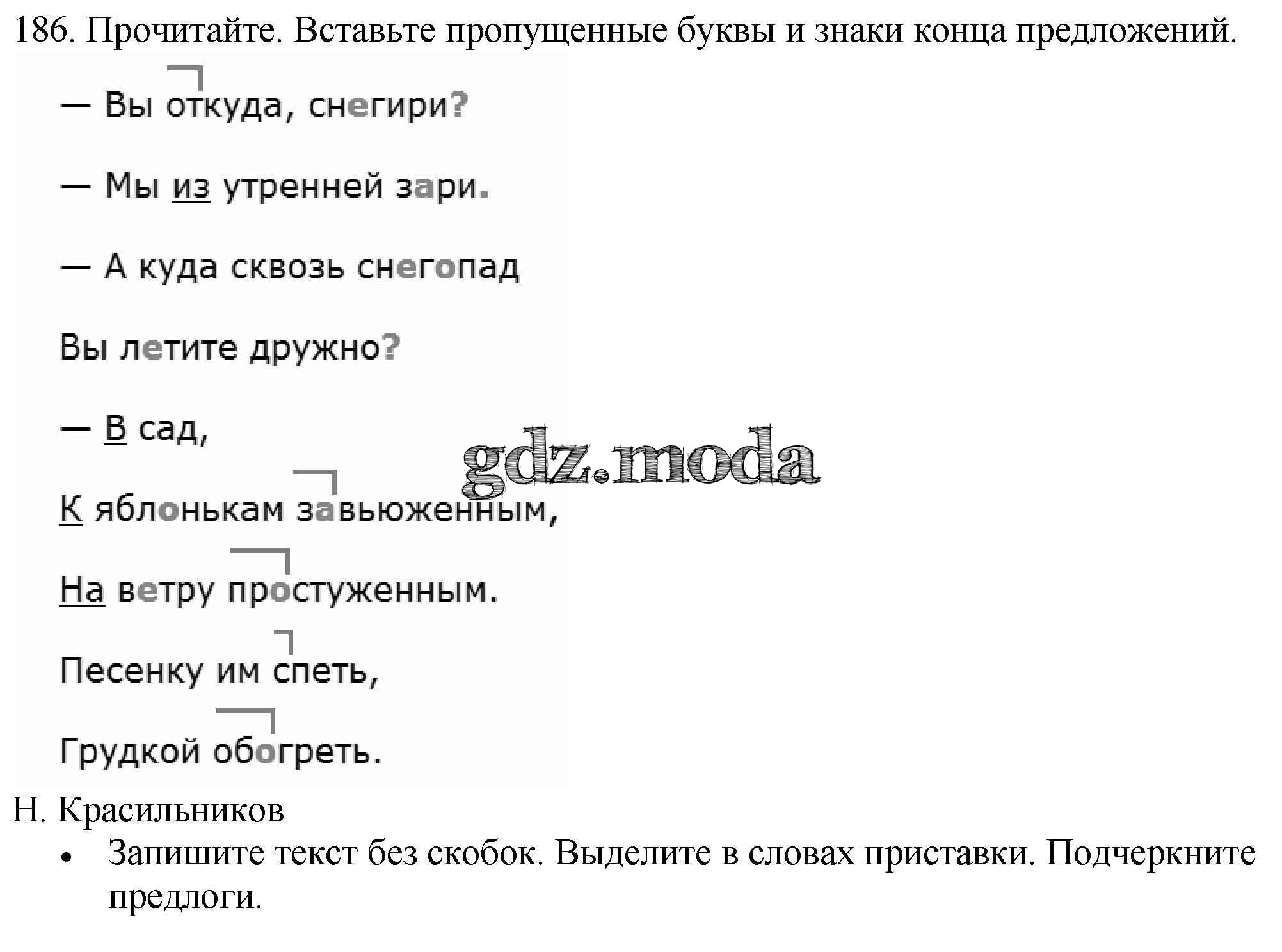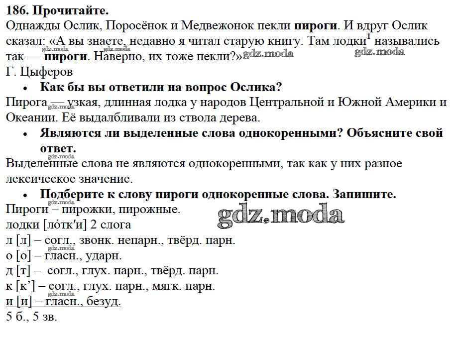 ОТВЕТ на задание № 186 Учебник по Русскому языку 3 класс Канакина Школа России