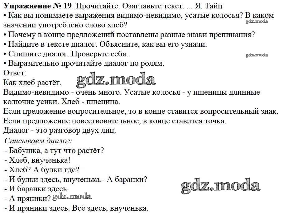 ОТВЕТ на задание № 19 Учебник по Русскому языку 3 класс Канакина Школа России