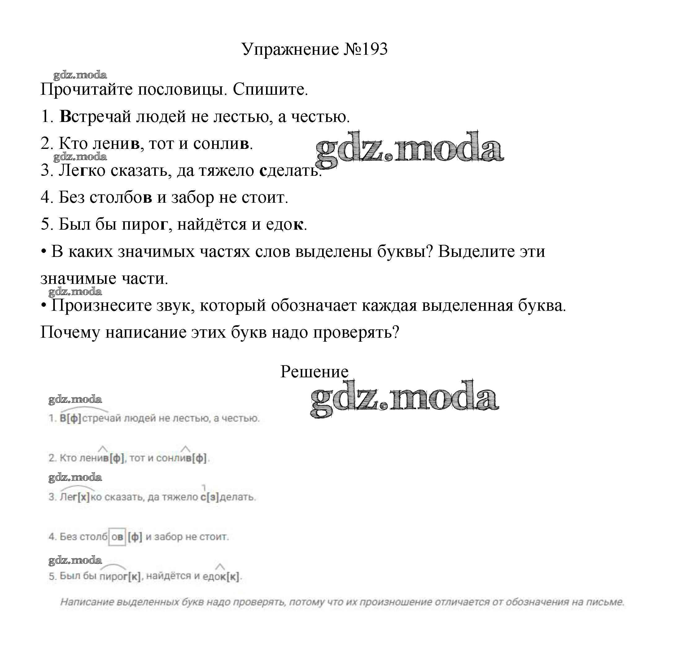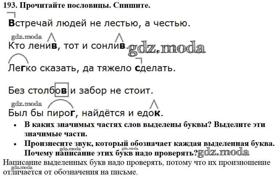 ОТВЕТ на задание № 193 Учебник по Русскому языку 3 класс Канакина Школа России