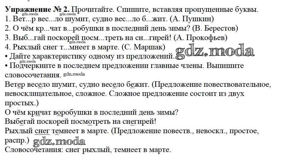 ОТВЕТ на задание № 2 Учебник по Русскому языку 3 класс Канакина Школа России