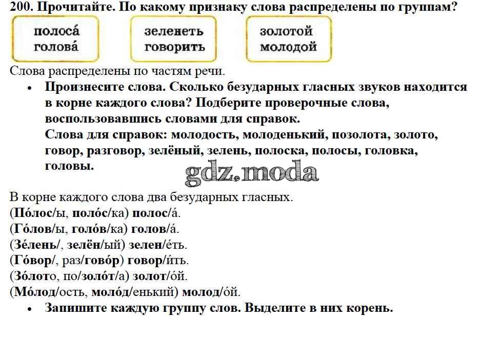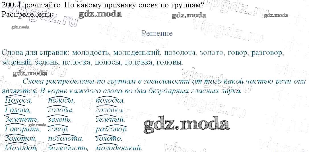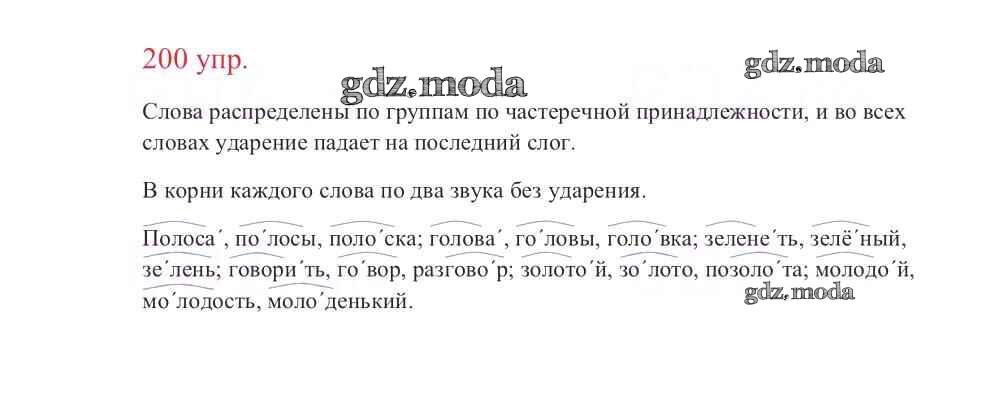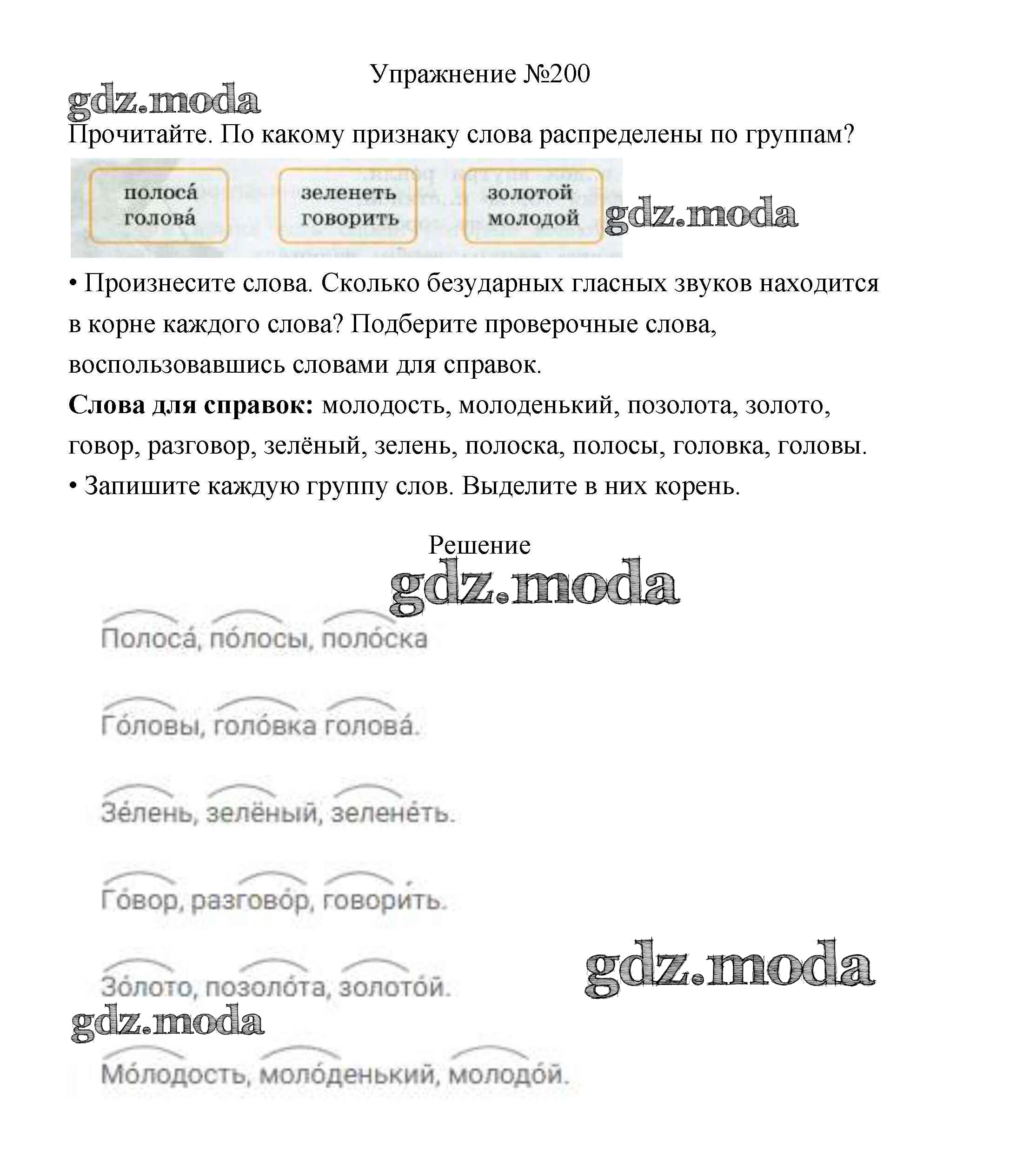 ОТВЕТ на задание № 200 Учебник по Русскому языку 3 класс Канакина Школа России