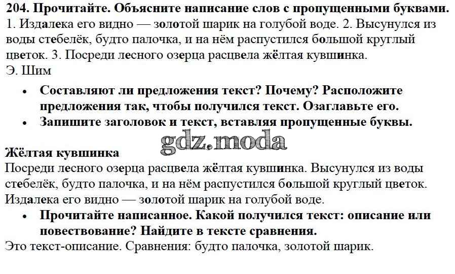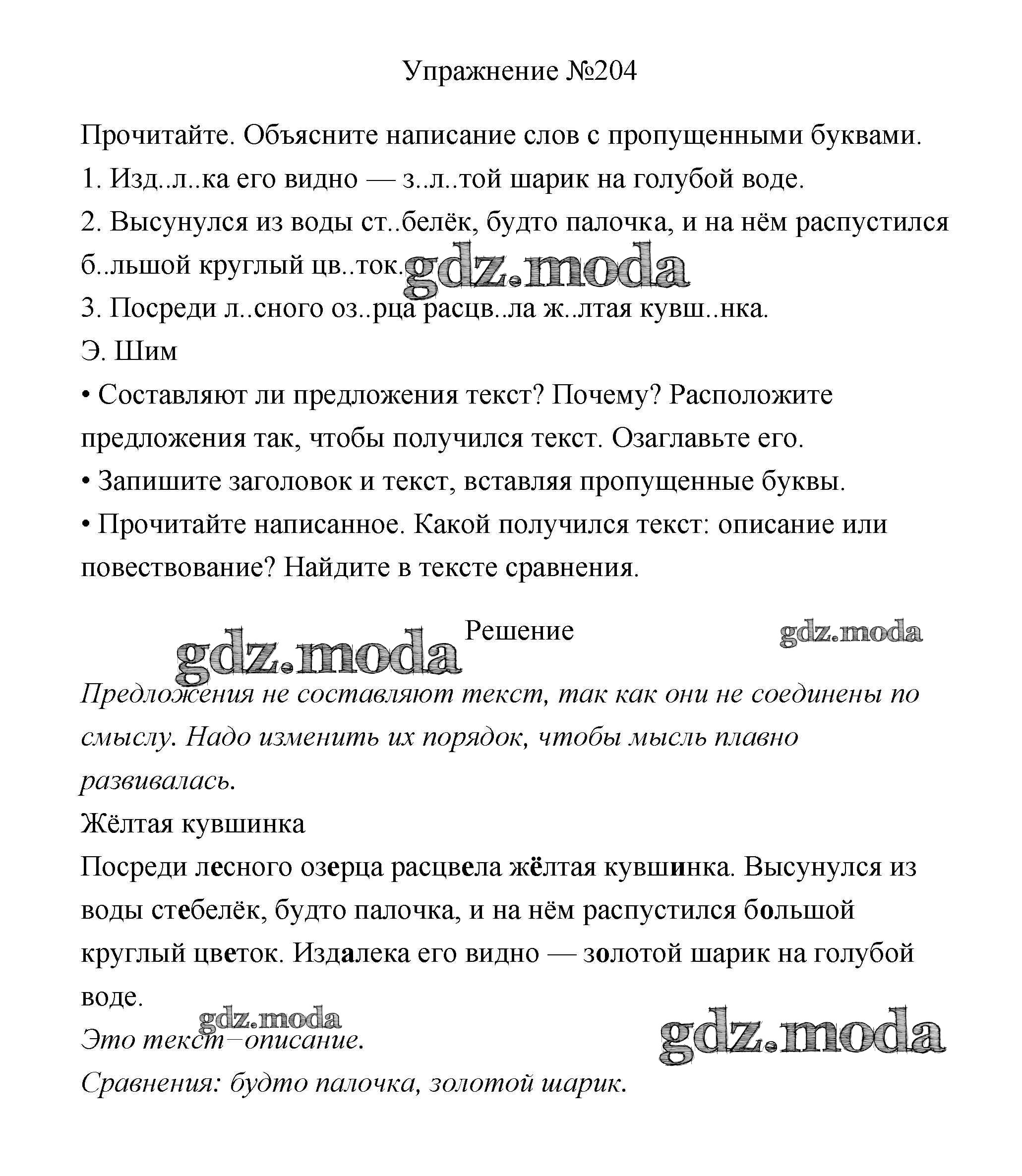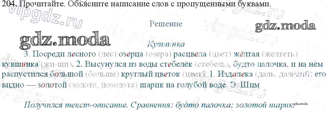 ОТВЕТ на задание № 204 Учебник по Русскому языку 3 класс Канакина Школа России